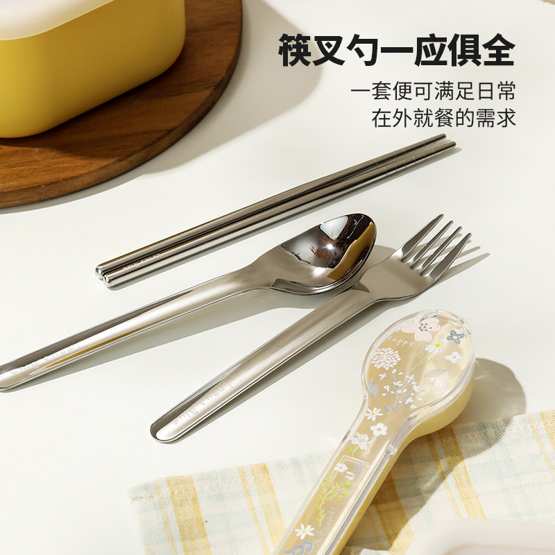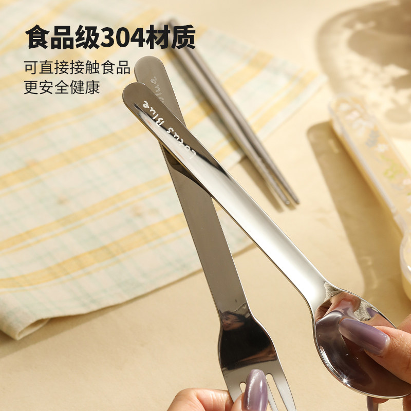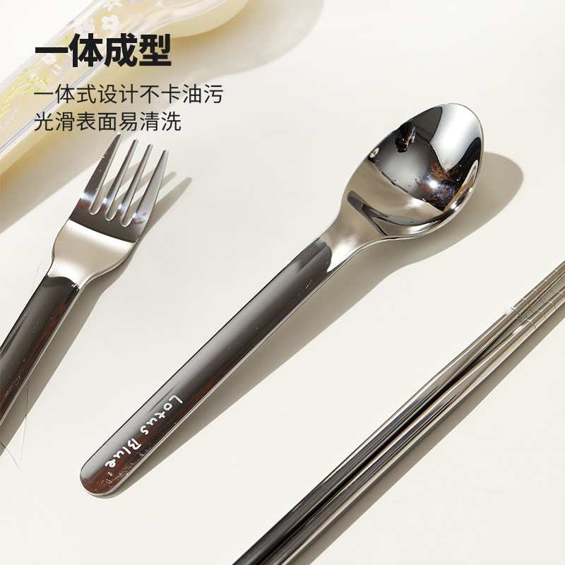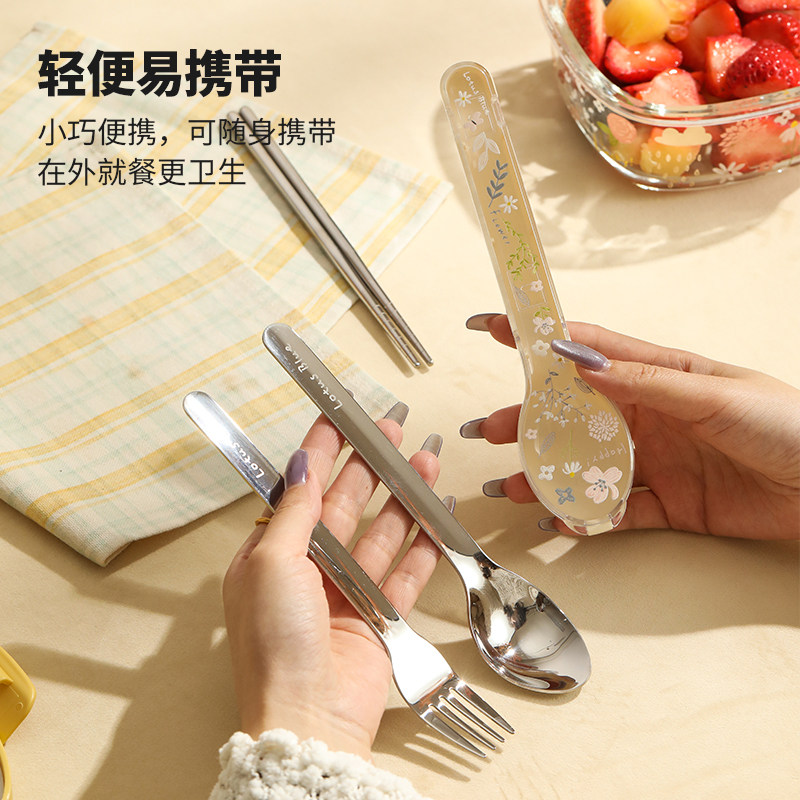 蓝莲花不锈钢筷子勺子叉三件套可爱一人用套装学生便携餐具收纳盒
