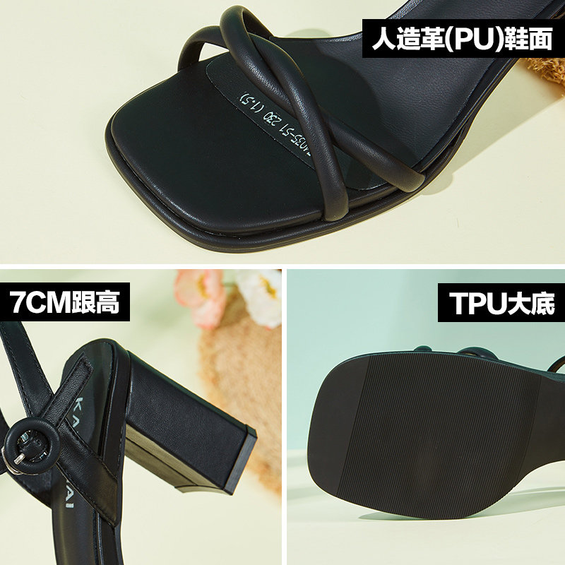 康奈女鞋夏季真皮粗跟高跟鞋百搭舒适女士凉鞋通勤鞋工作鞋女