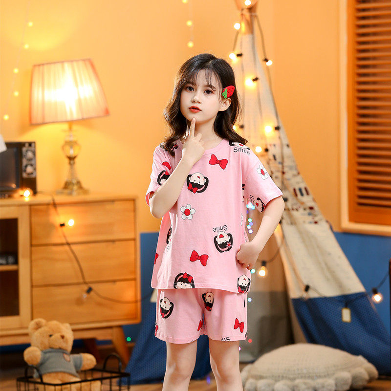 夏天儿童睡衣短袖套装100%纯棉薄款女孩宝宝全棉家居服女童装半袖