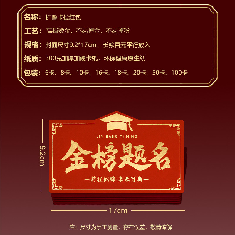 金榜题名红包袋2026中高考成人礼升学宴211精致高级通用款利是封