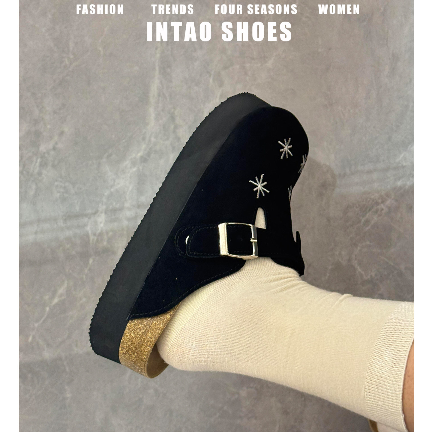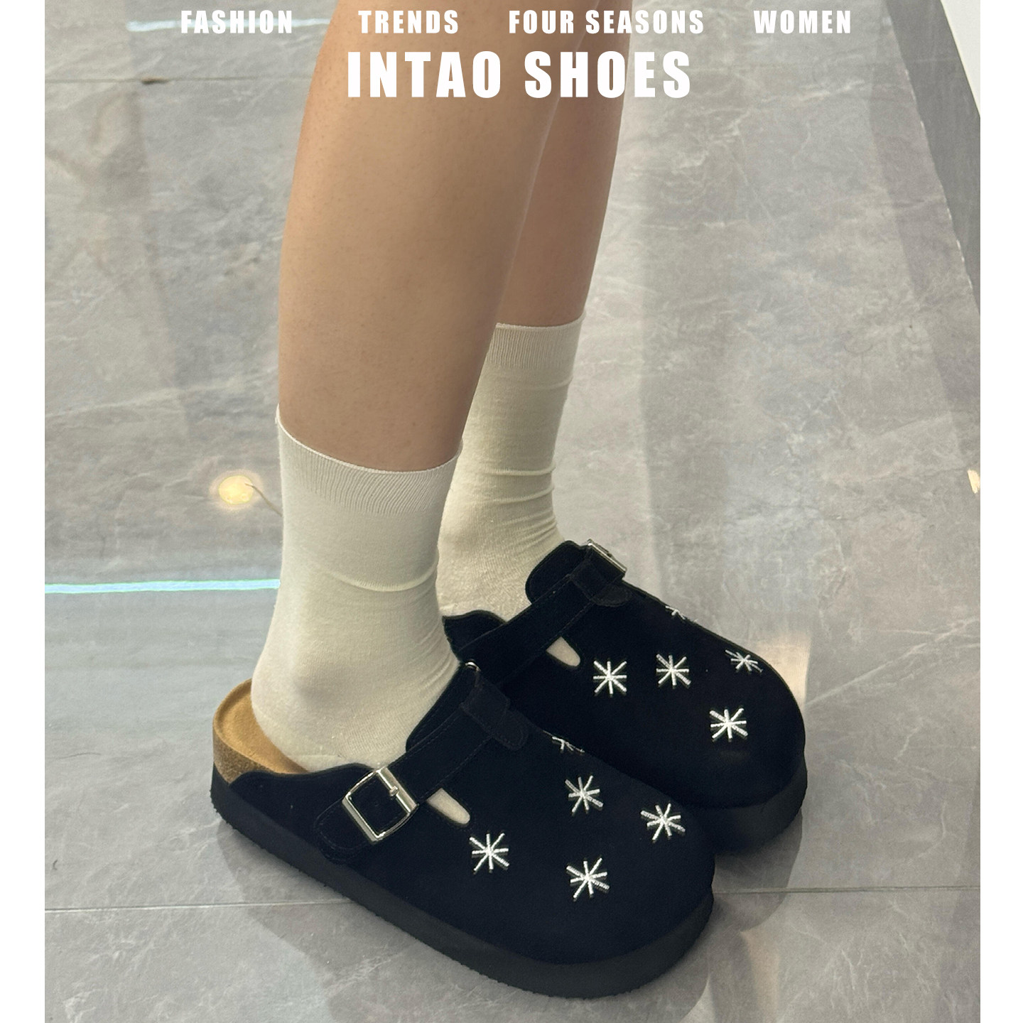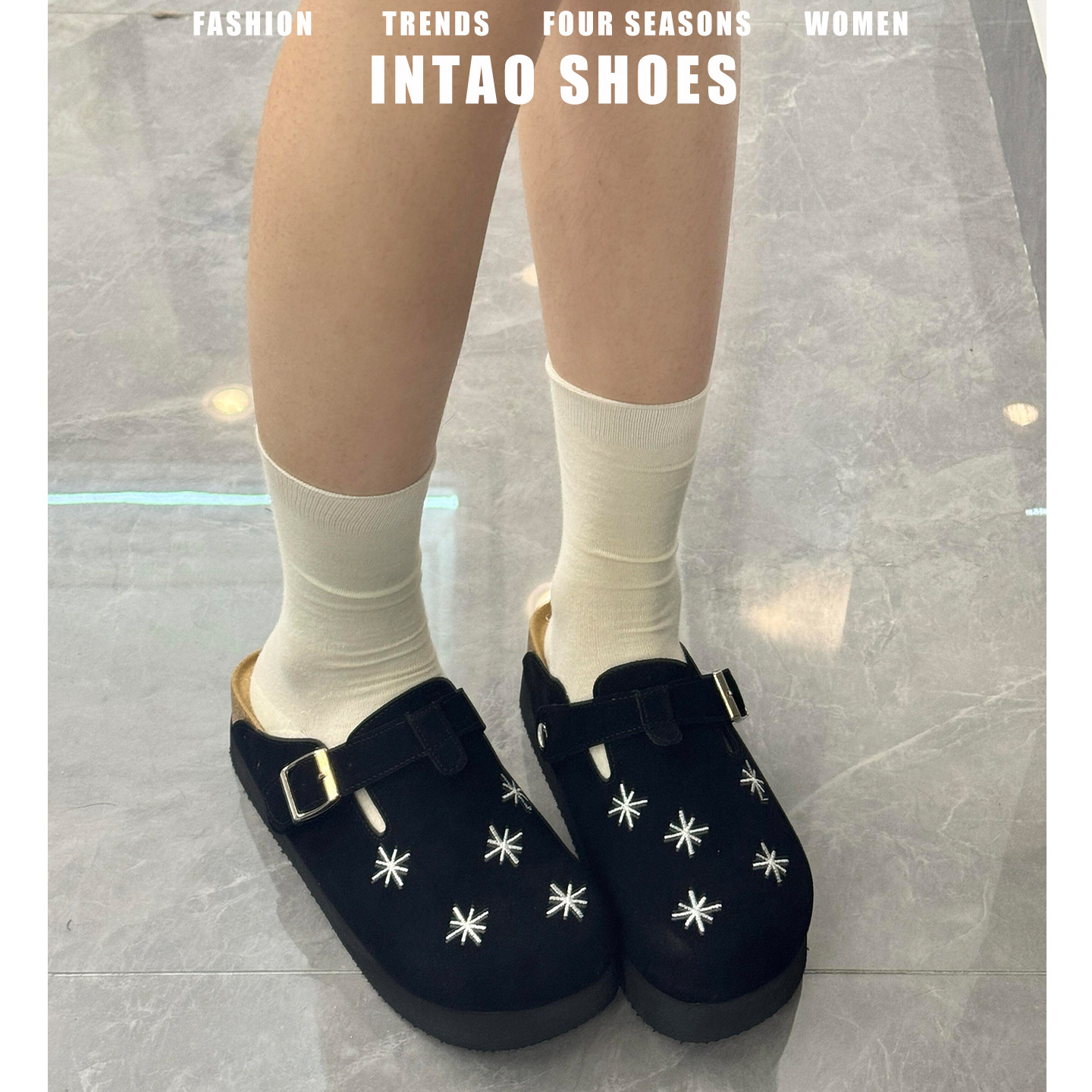 黑色星星刺绣松糕厚底增高勃肯鞋女2026春季新款一脚蹬包头半拖鞋