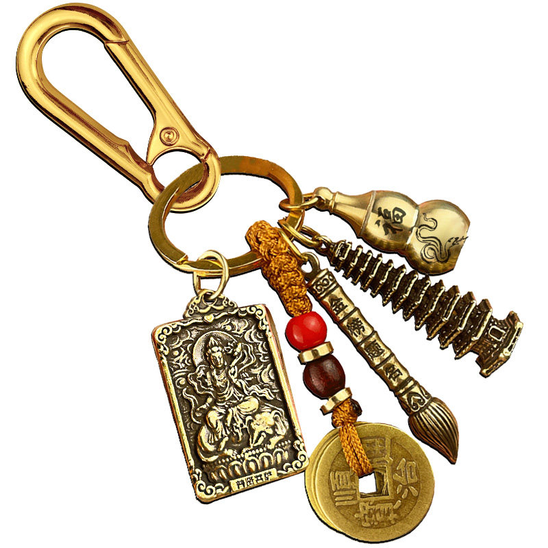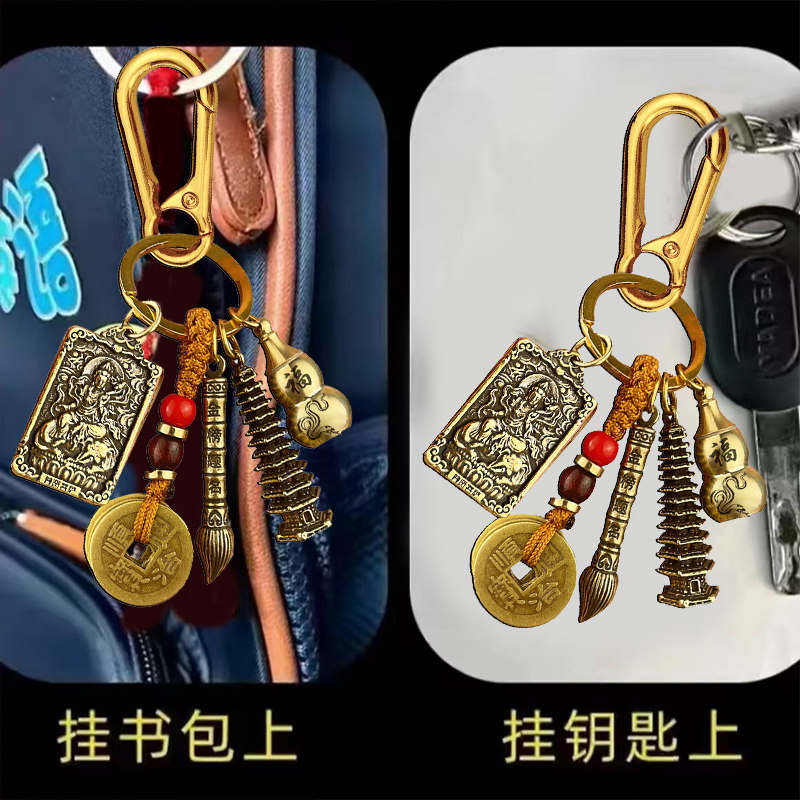 黄铜文昌塔十二生肖钥匙扣6件套男女孩学生挂件金榜题名步步高升