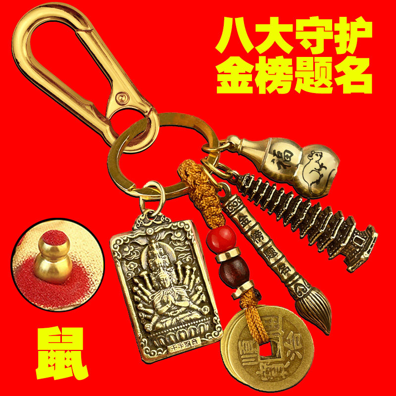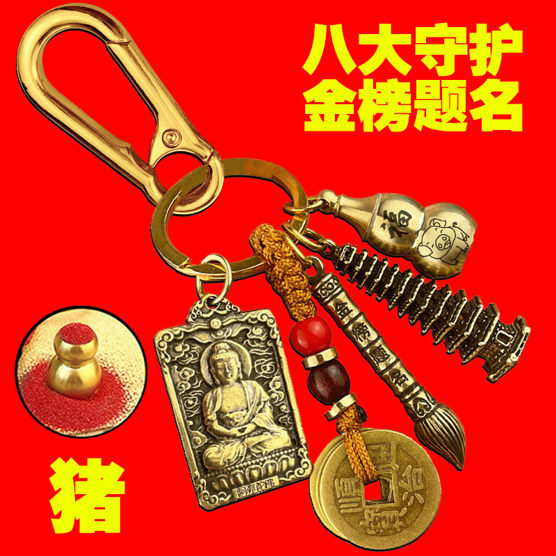 311线报网描述:黄铜文昌塔十二生肖钥匙扣男女孩学生挂件