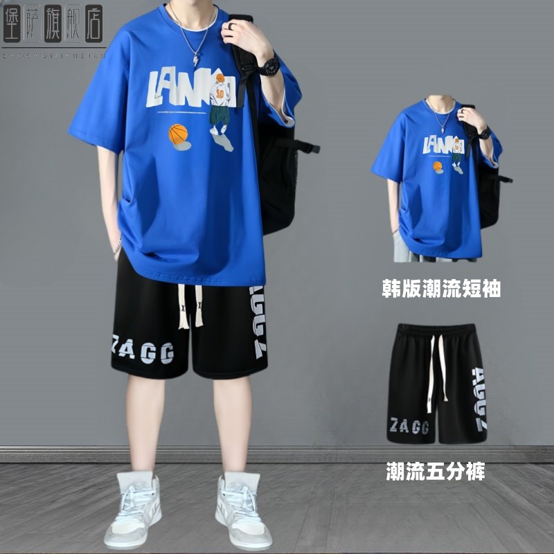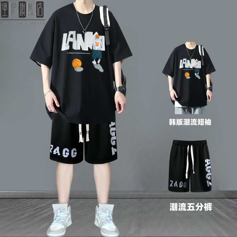 青少年短袖t恤男2025新款夏季纯棉半袖体恤衫上衣服休闲运动套装