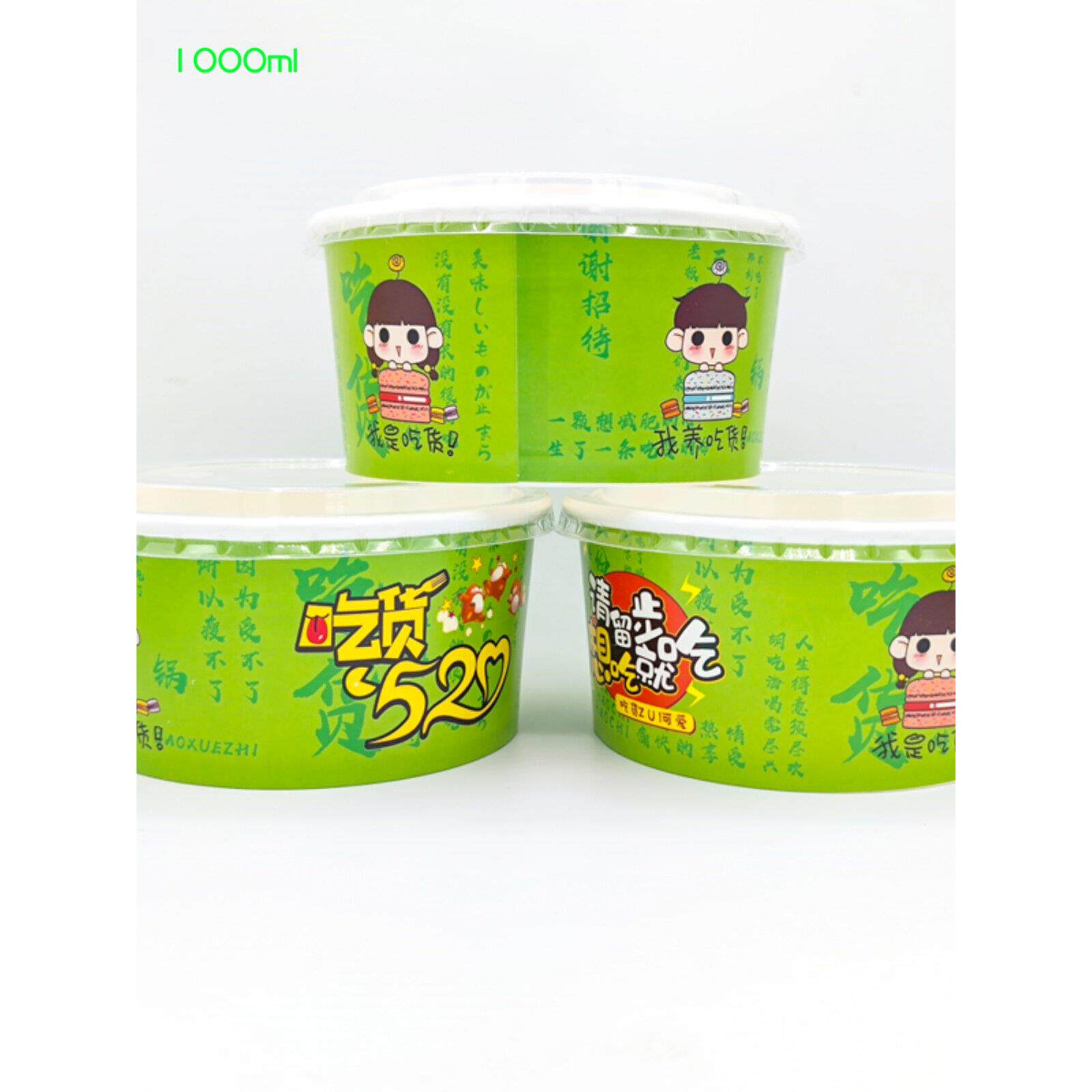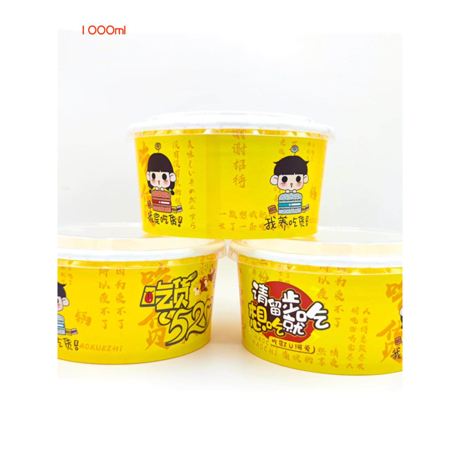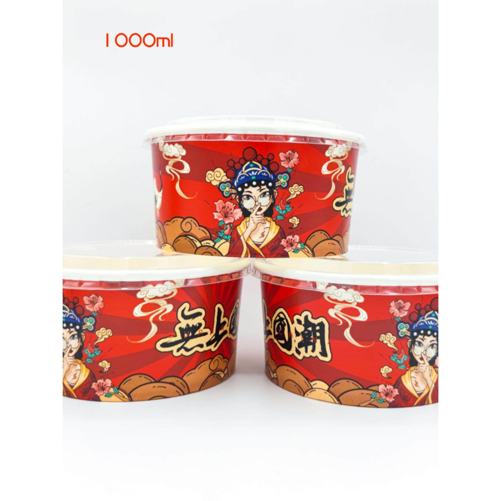 一次性牛皮纸碗1000ml餐盒外卖打包盒热干面沙拉拌饭圆形打包餐盒