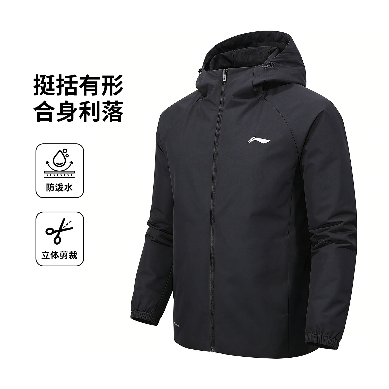 李宁外套男款2026春季新款运动男士保暖跑步防风软壳连帽风衣夹克