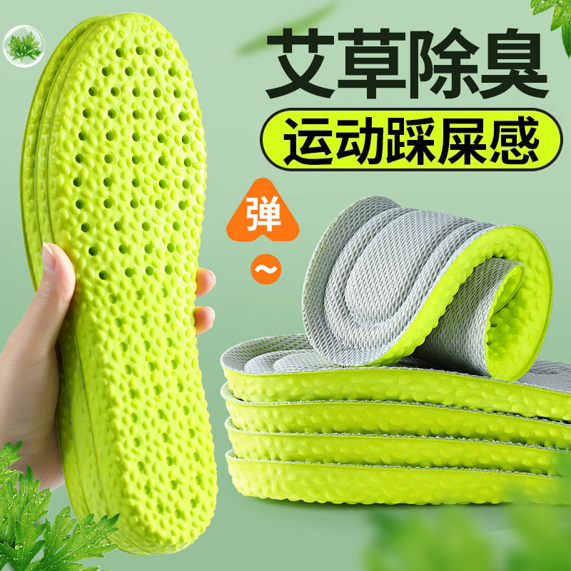 防臭鞋垫男款女久站不累踩屎感艾草除臭吸汗运动气垫减震军训专用