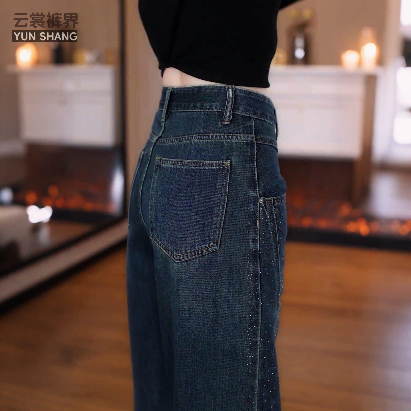 烫钻牛仔裤女2026新款春秋季版型好看的阔腿裤子女款高腰九分裤女