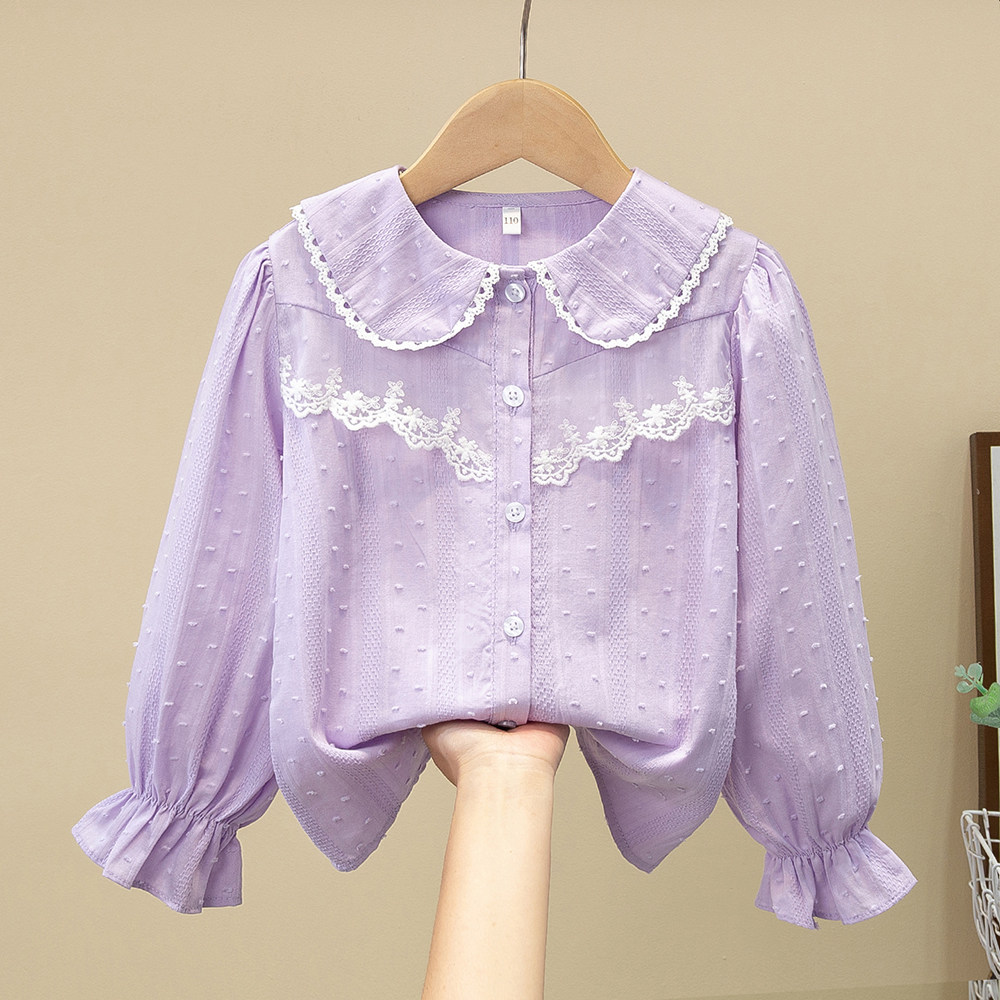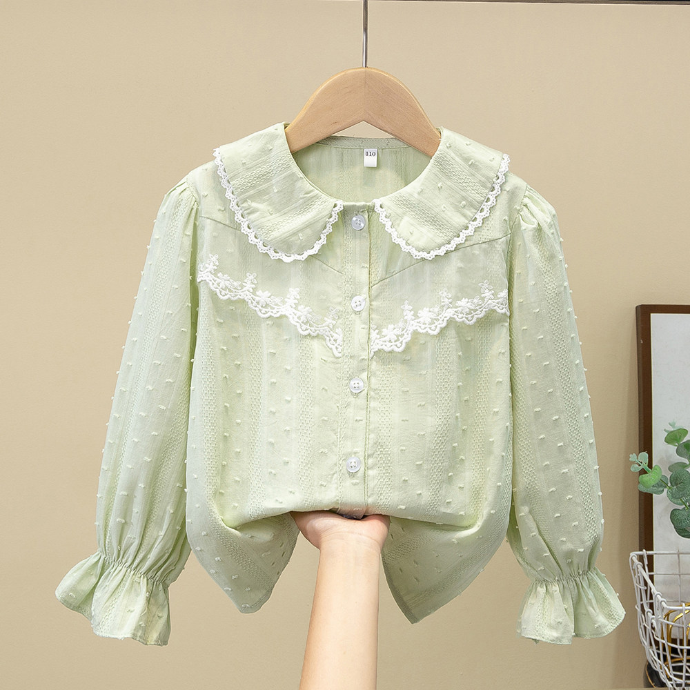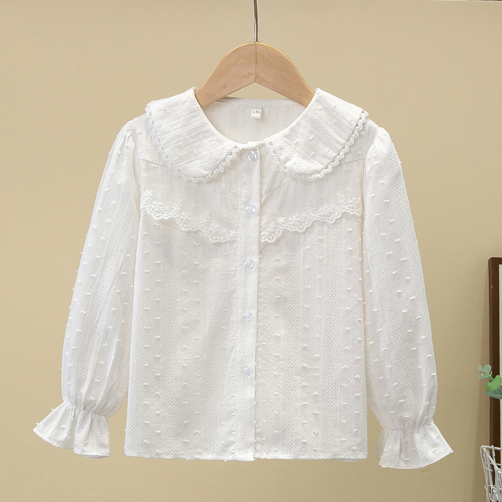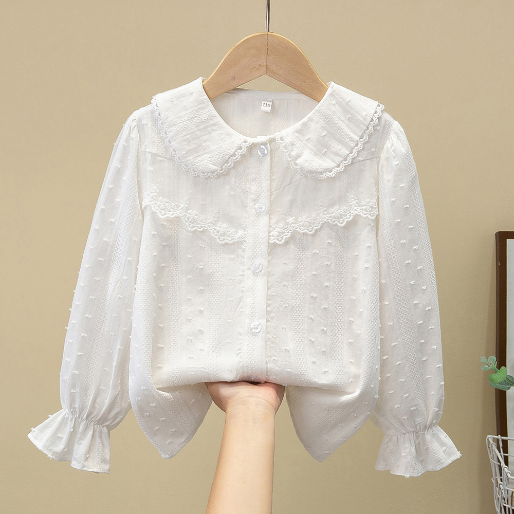 女童衬衫2026新款春装洋气薄款长袖白衬衣儿童蕾丝纯棉打底衫上衣