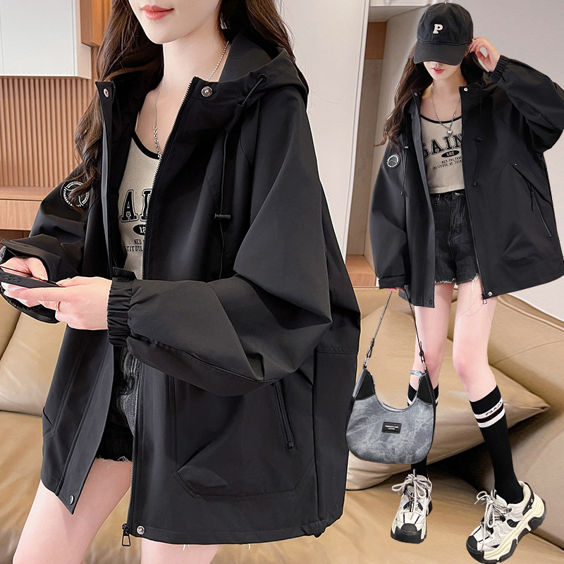 实拍韩版时尚连帽风衣外套女款春秋新款学生青少年休闲百搭冲锋衣