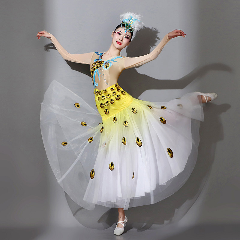 新品新款女傣族舞蹈演出服成人孔B雀舞艺考表演服装修身包臀鱼尾