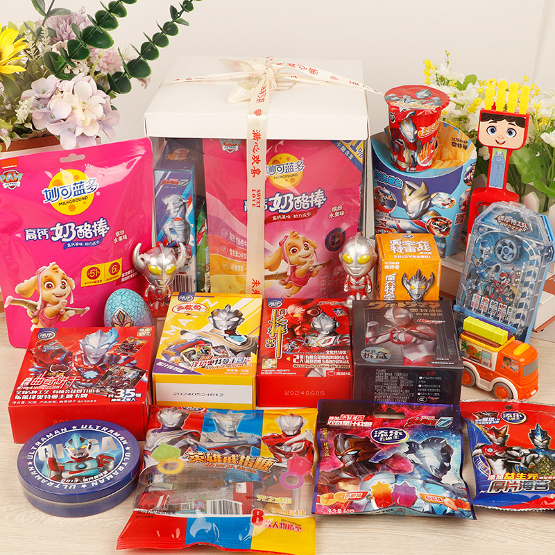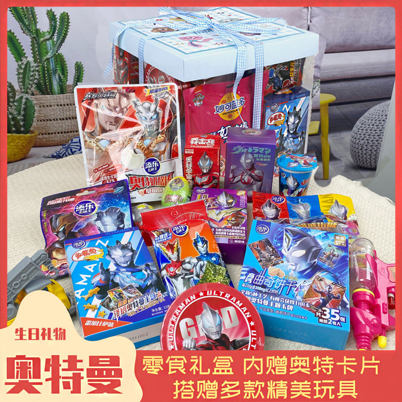 奥特曼零食礼盒手提礼袋戒指糖饼干大礼包男孩男生毕业礼生日礼物