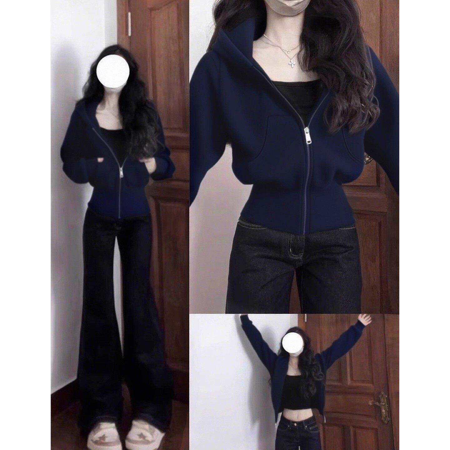 粉色短款卫衣外套女款春秋正肩连帽修身收腰上衣薄韩系早春季穿搭