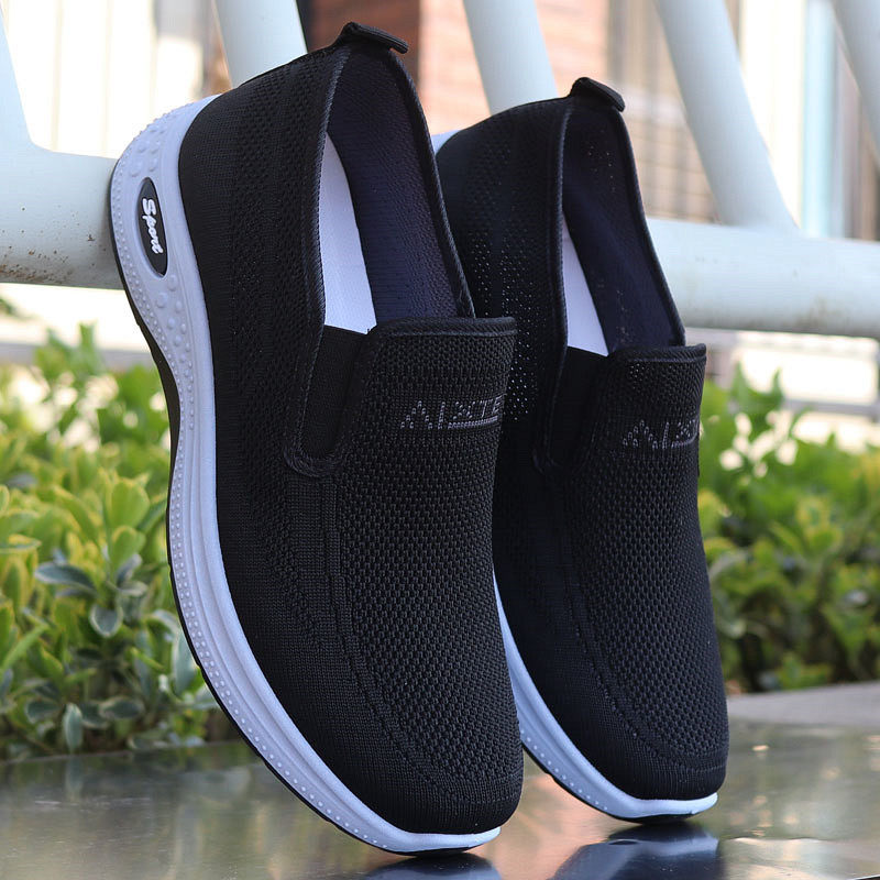 一脚蹬男鞋2025新款夏季透气爸爸鞋子软底网面薄款鞋老北京布鞋男