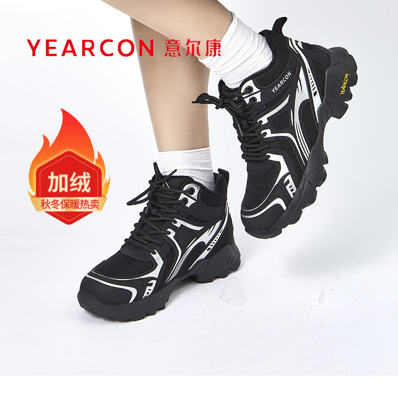 意尔康女鞋秋冬款2024新款运动休闲鞋高帮鞋女潮酷厚底增高加绒暖