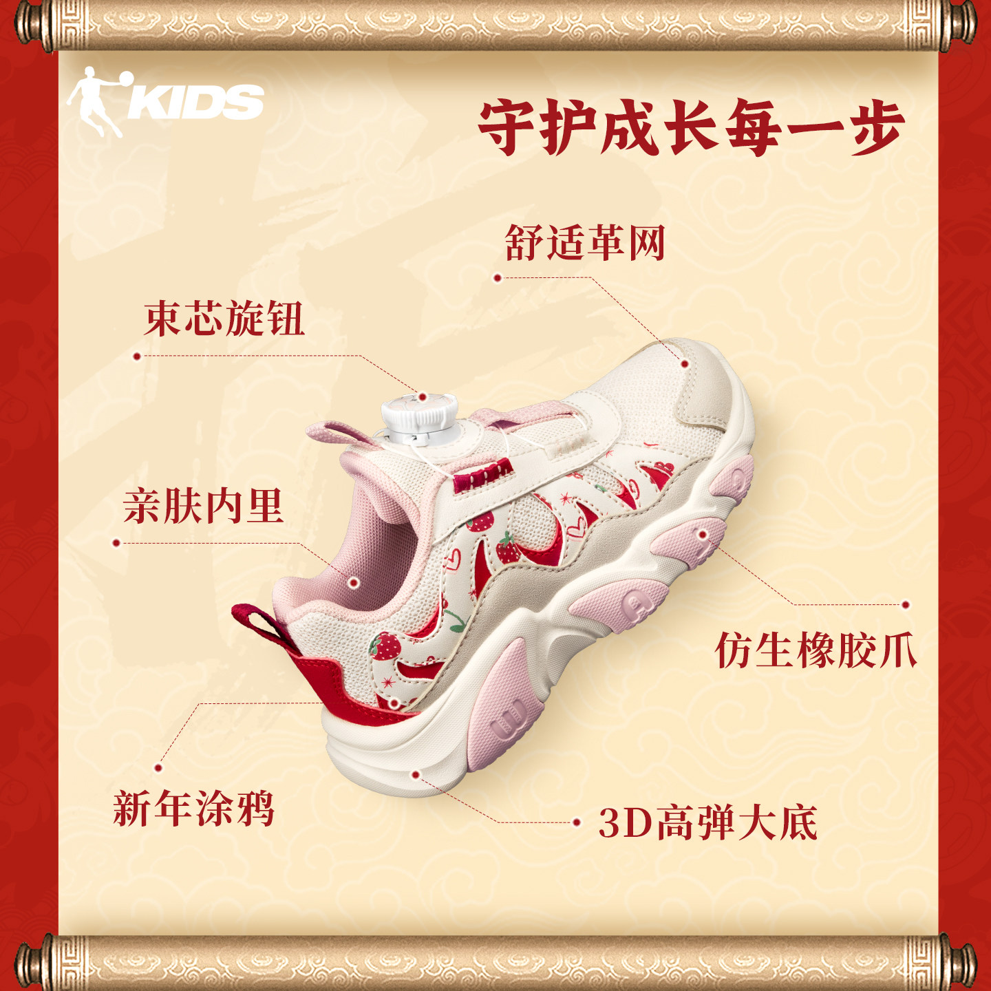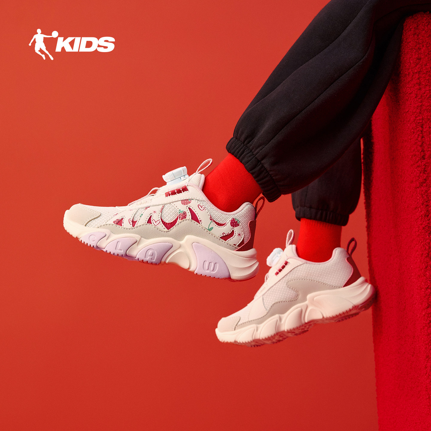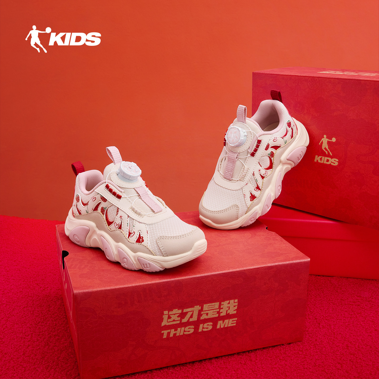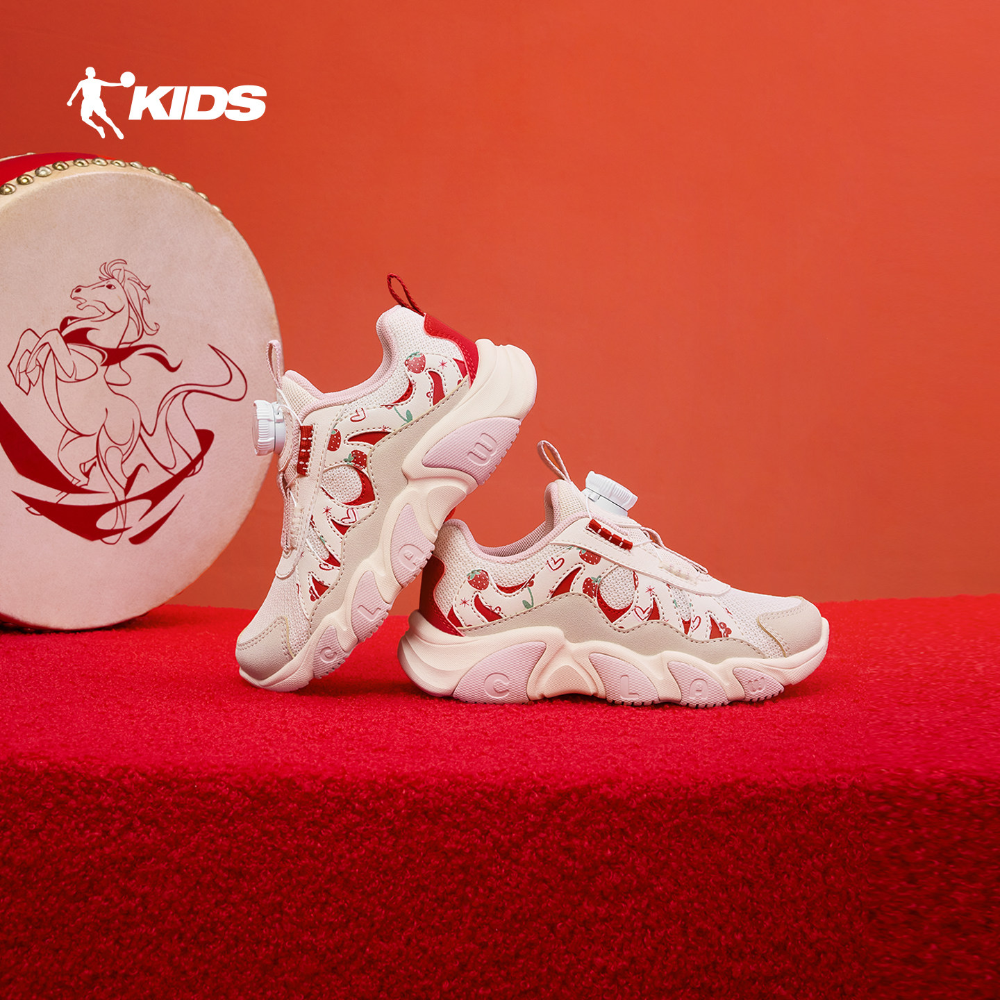 爪爪鞋乔丹童鞋女童运动鞋红色新年鞋2026春季新款旋钮扣小童鞋子
