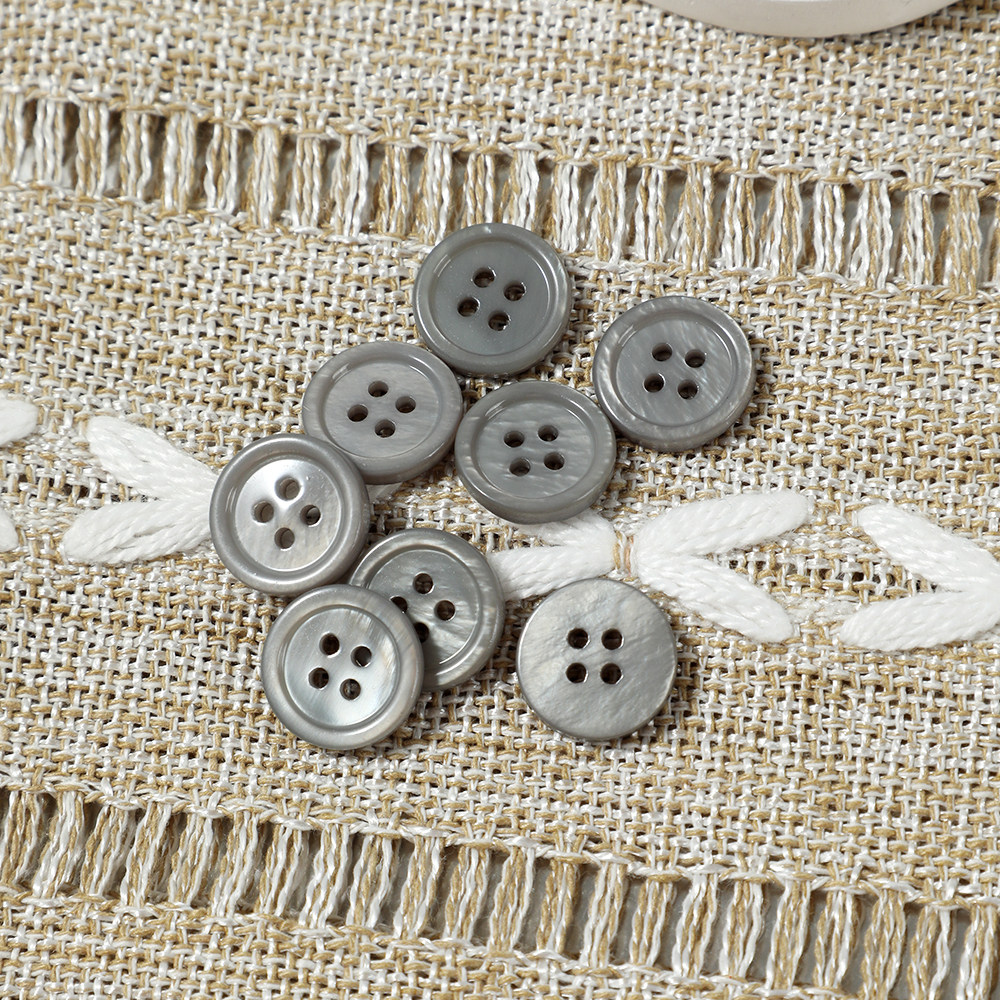 灰色四眼天然贝壳纽扣男女衬衫开衫雪纺针织衫大衣西装外套连衣裙