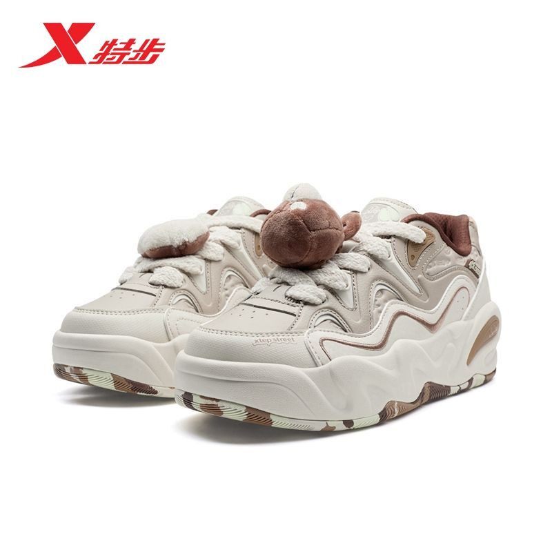 特步板鞋女鞋春夏季新款可爱时尚运动鞋百搭小白鞋厚底增高休闲鞋