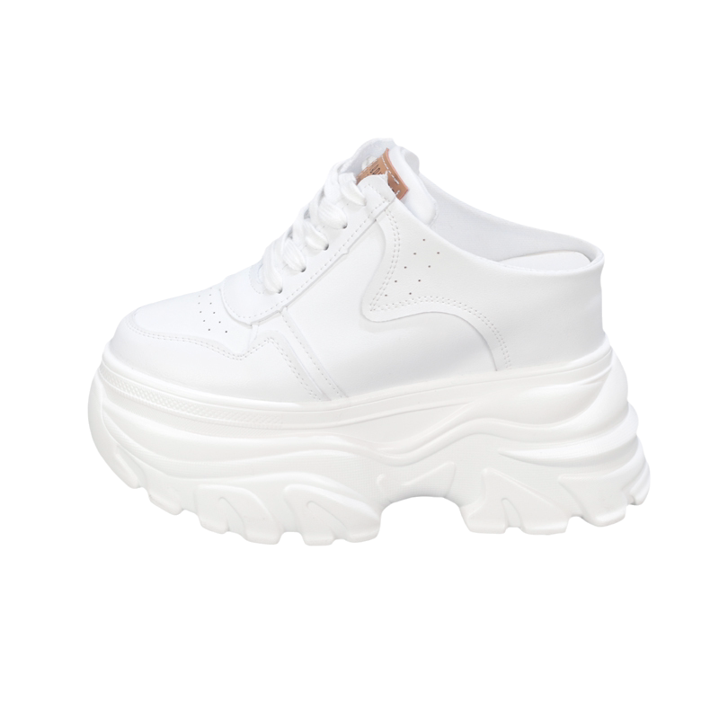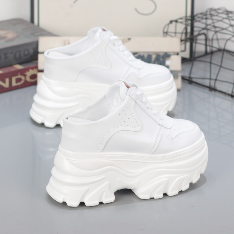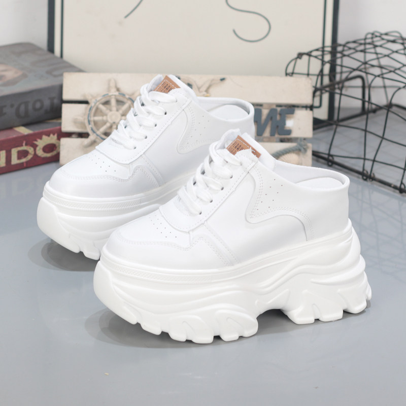 皮面小白鞋女厚底内增高11CM小个子无后跟懒人鞋老爹鞋外穿半拖鞋