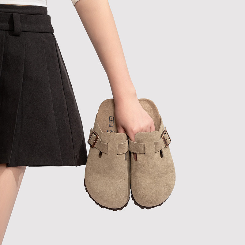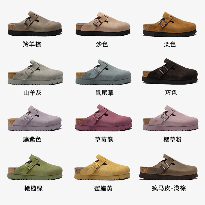 5厘米新款勃肯鞋半拖包头拖女鞋博肯鞋厚底增高真皮单鞋凉鞋桑坡