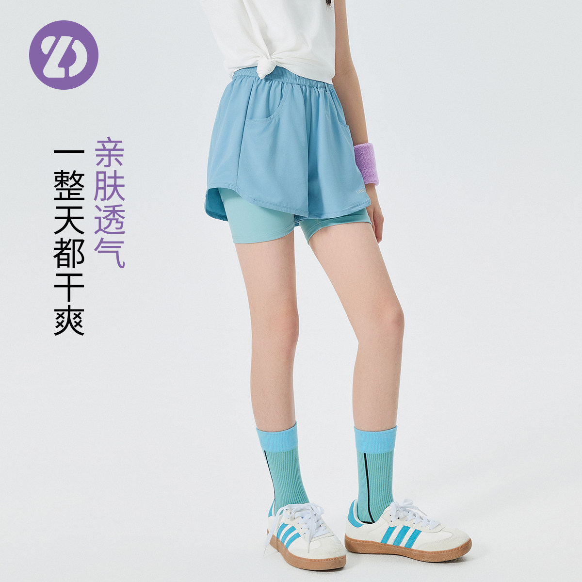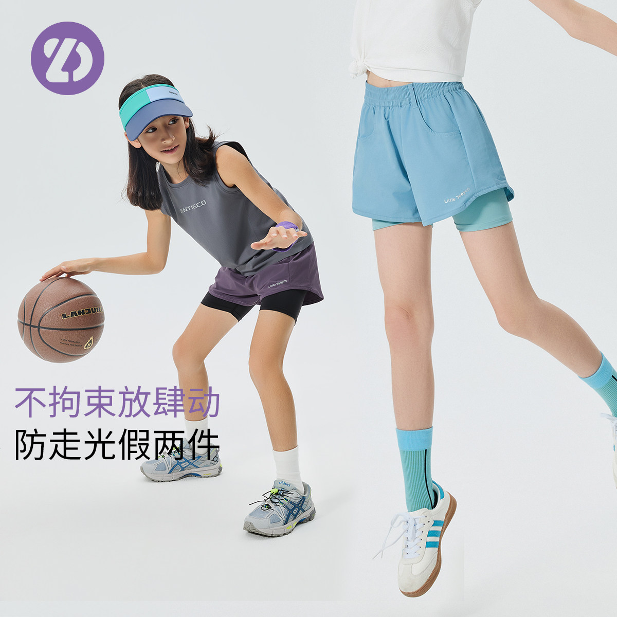 LD童装儿童假两件运动短裤夏季男女童户外休闲裤子跑步篮球训练裤
