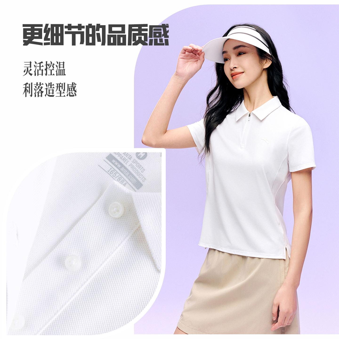 安踏速干polo丨公主线防晒短袖女款夏季翻领透气网球T恤休闲上衣