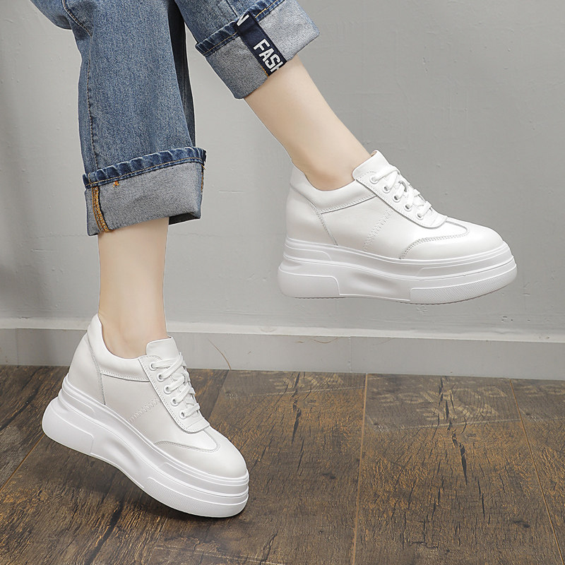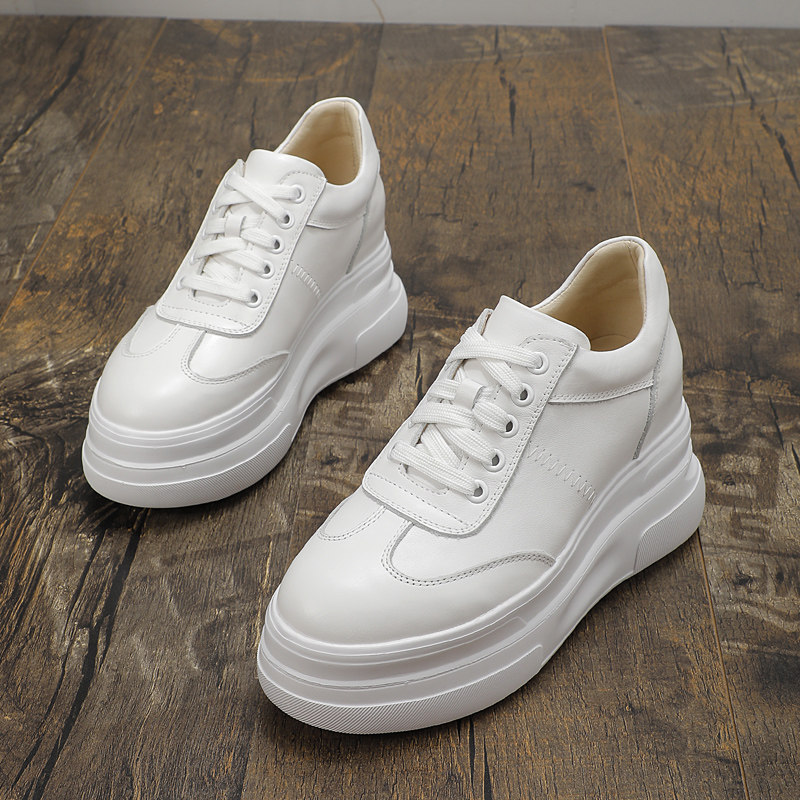 2025春季真皮小白鞋女内增高德训鞋8-10cm小个子厚底休闲运动板鞋