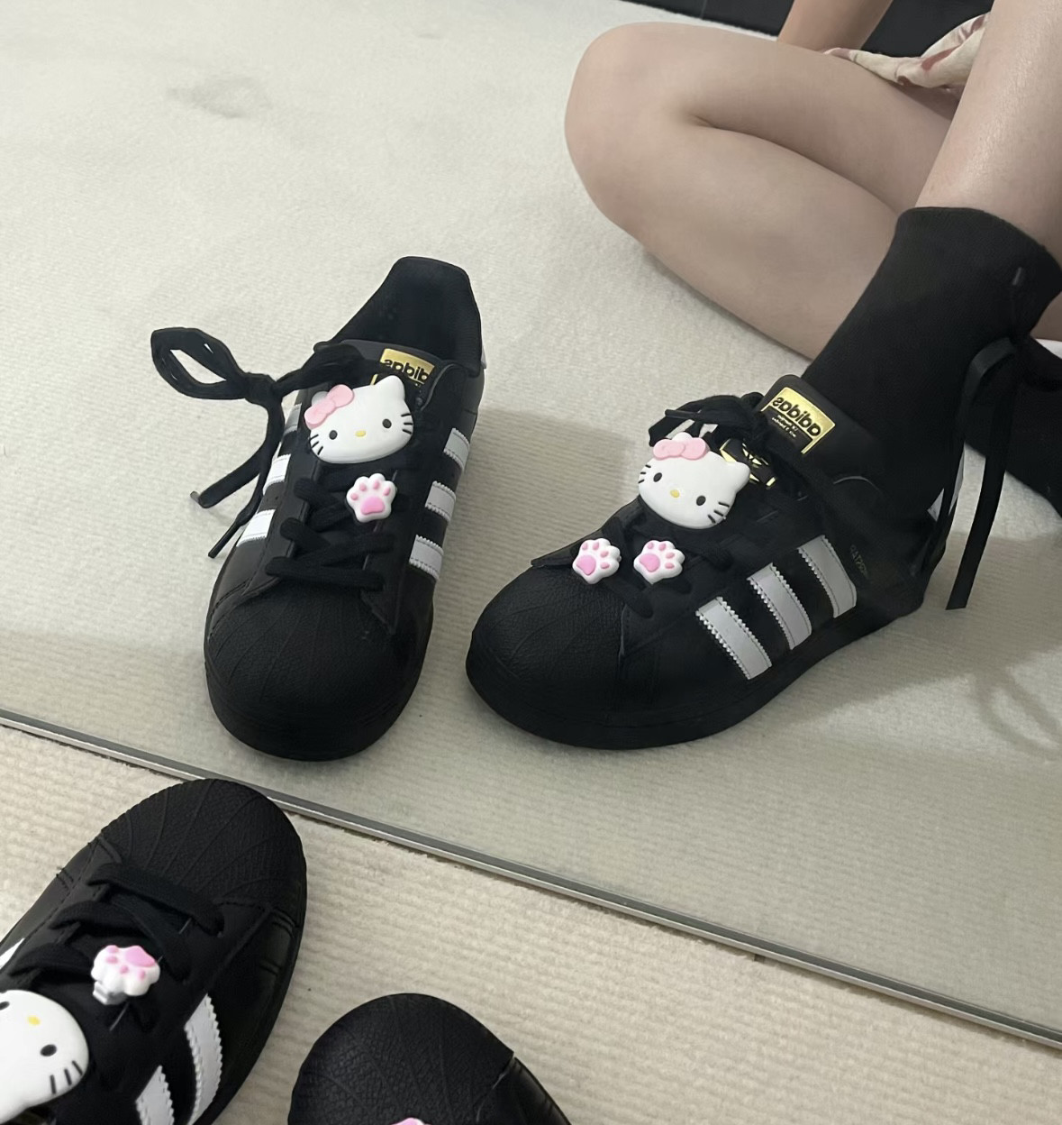 ins大号粉色kt软胶配件阿迪贝壳头黑白色鞋带扣鞋子凯蒂猫diy配饰