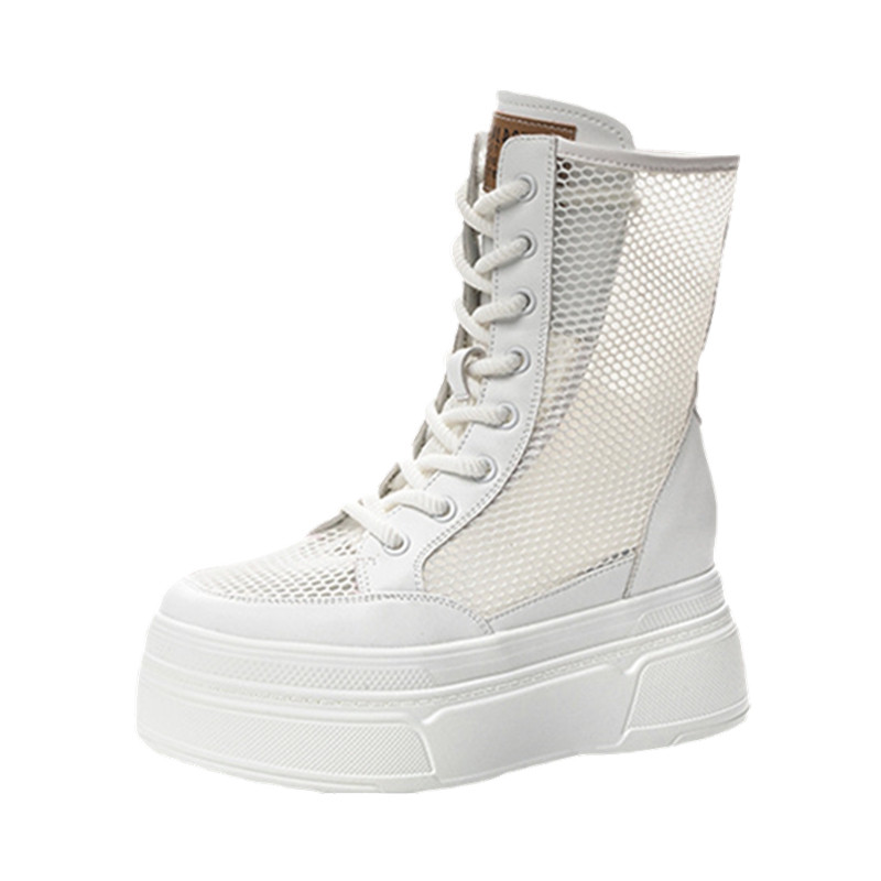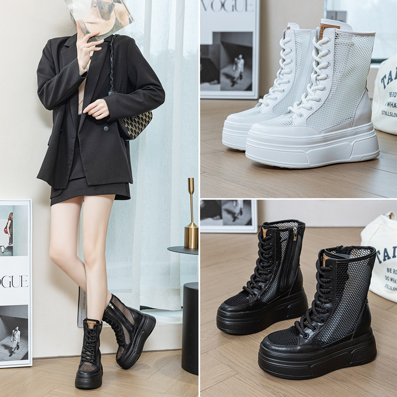 夏季薄款马丁靴女2026新款厚底增高真皮网纱透气镂空短筒凉靴百搭