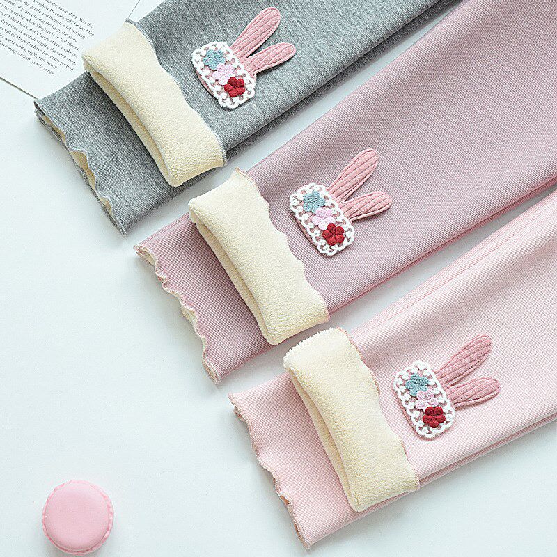 女童加绒裤子春秋薄绒外穿宝宝一体绒打底裤早春绒裤幼儿保暖长裤