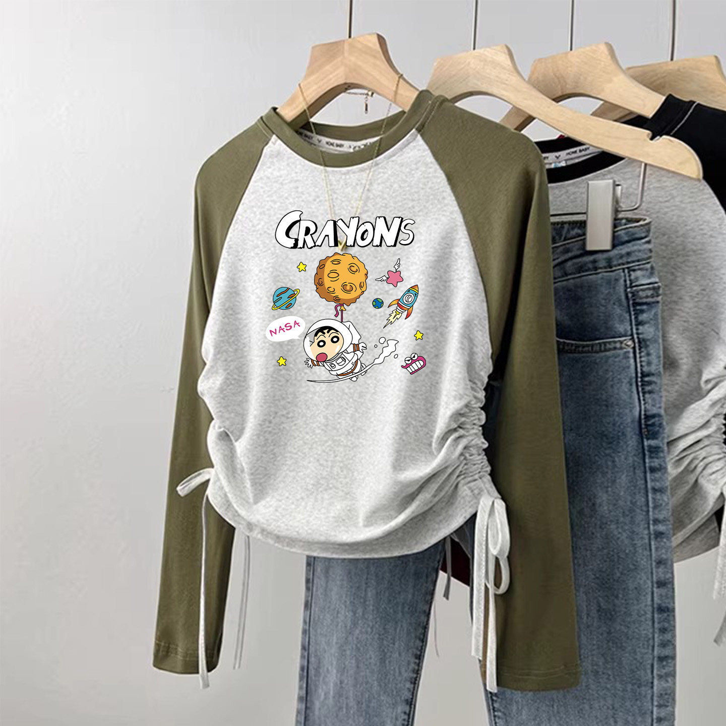 早春装女童纯棉插肩长袖t恤2026新款洋气时髦超好看儿童短款上衣