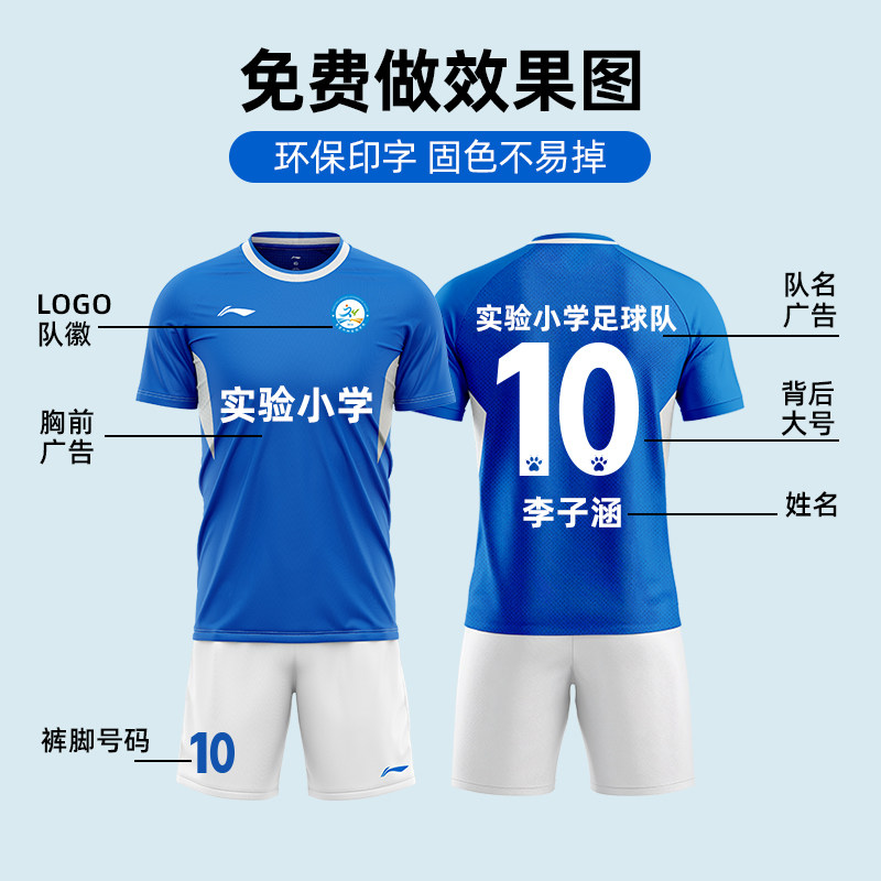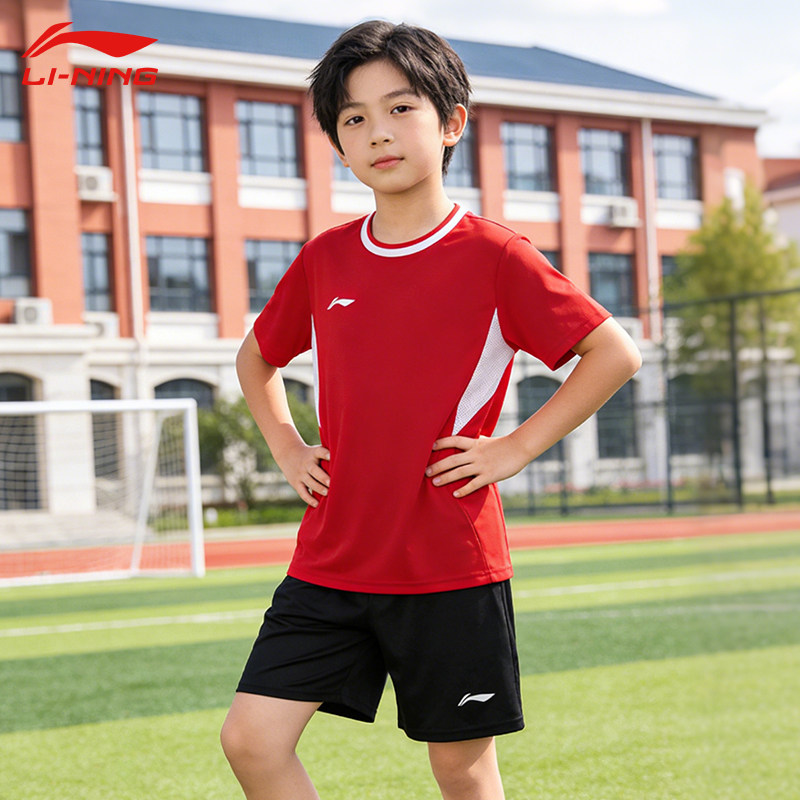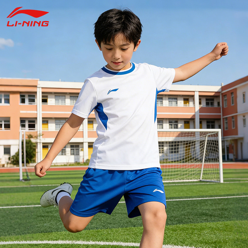 李宁儿童足球服套装男训练服专业足球比赛服速干透气短袖球衣定制