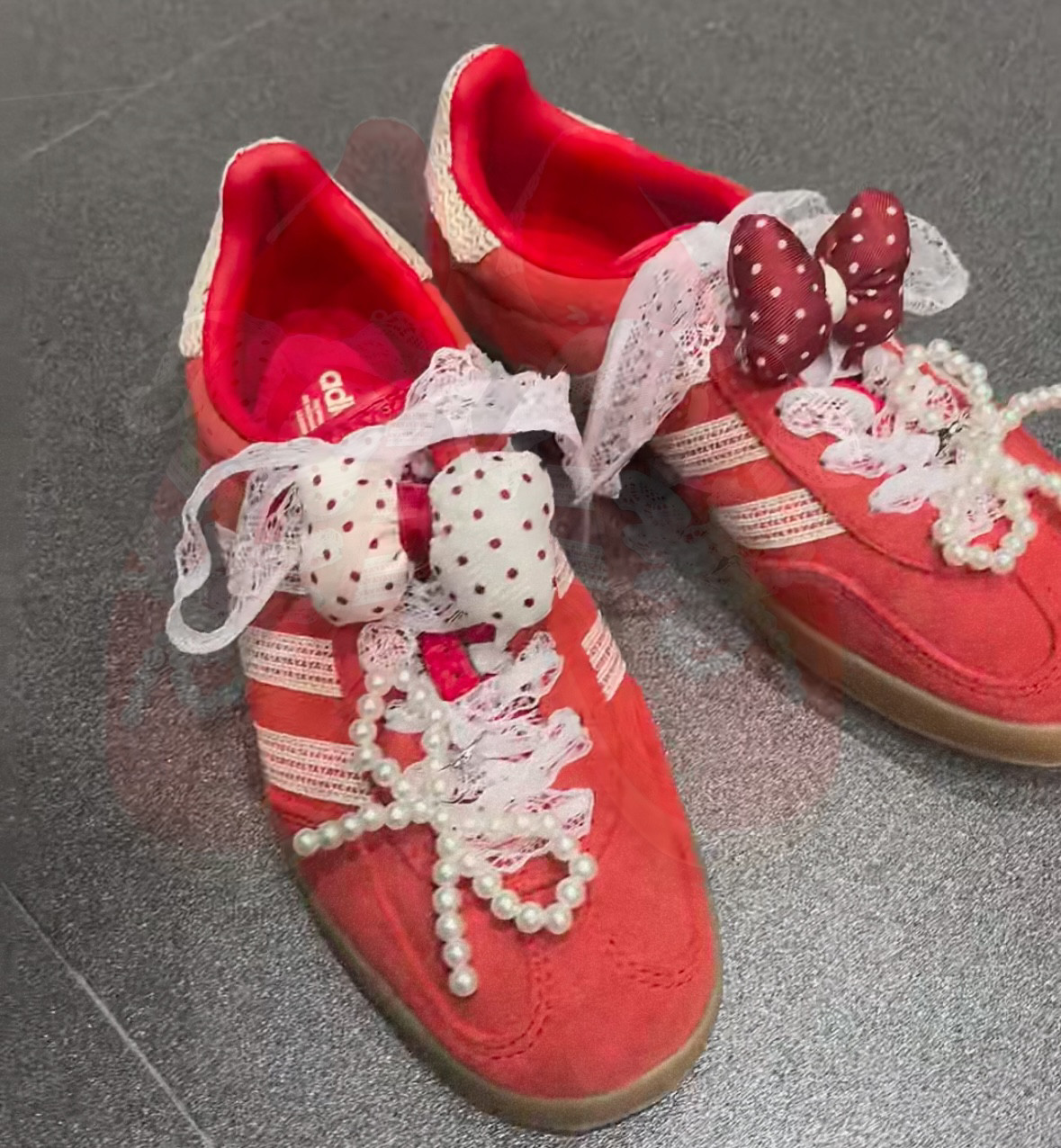 白红波点泡芙蝴蝶结鞋带扣配饰适配spezial德训鞋samba珍珠鞋花扣