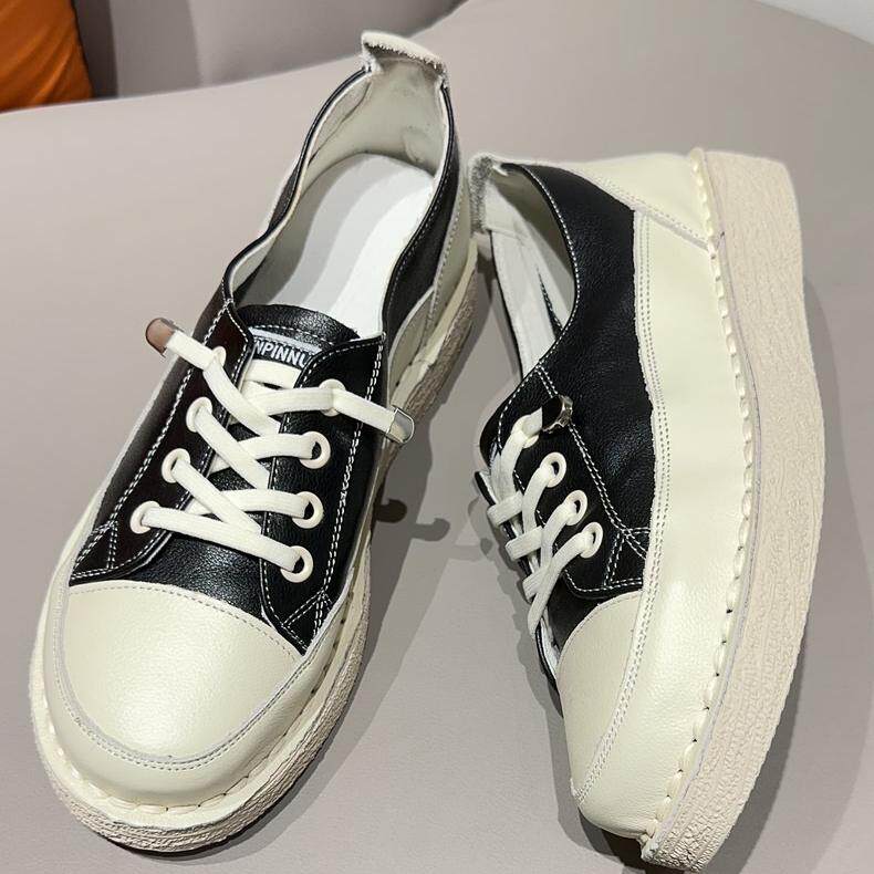 2026春季新款复古休闲真牛皮超舒服厚底免系带时尚女鞋通勤