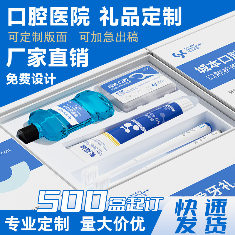 厂家直销口腔医院牙科诊所定制logo牙刷牙膏牙线漱口水护理礼盒