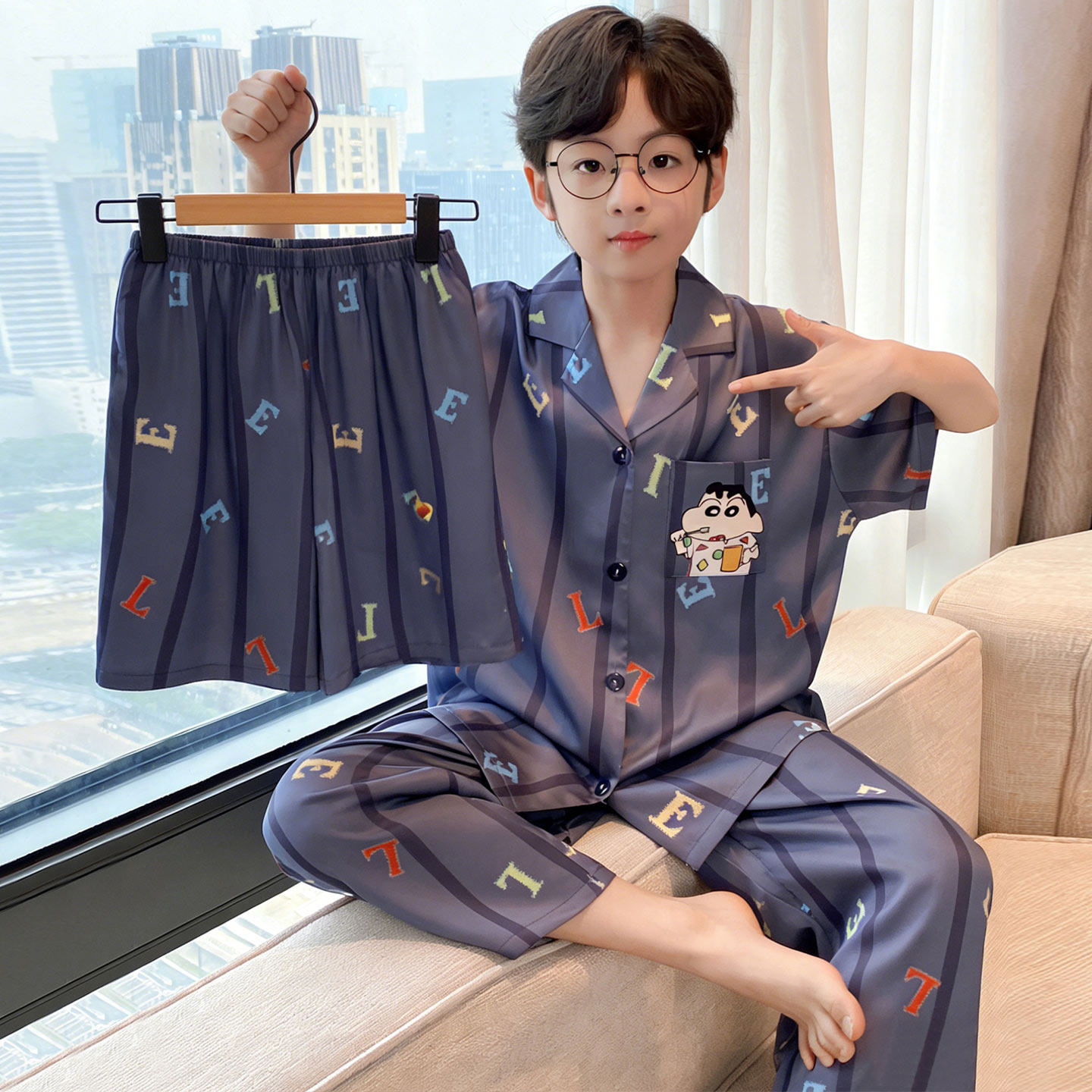 311线报网描述:卡皮巴拉男童夏季冰丝短袖中大童学生家居服