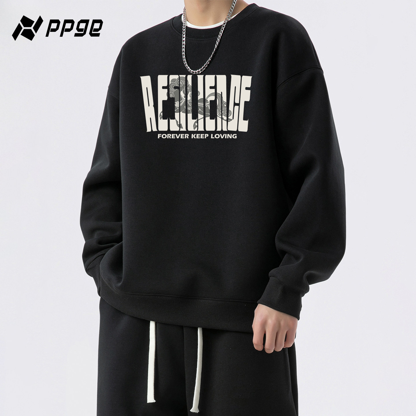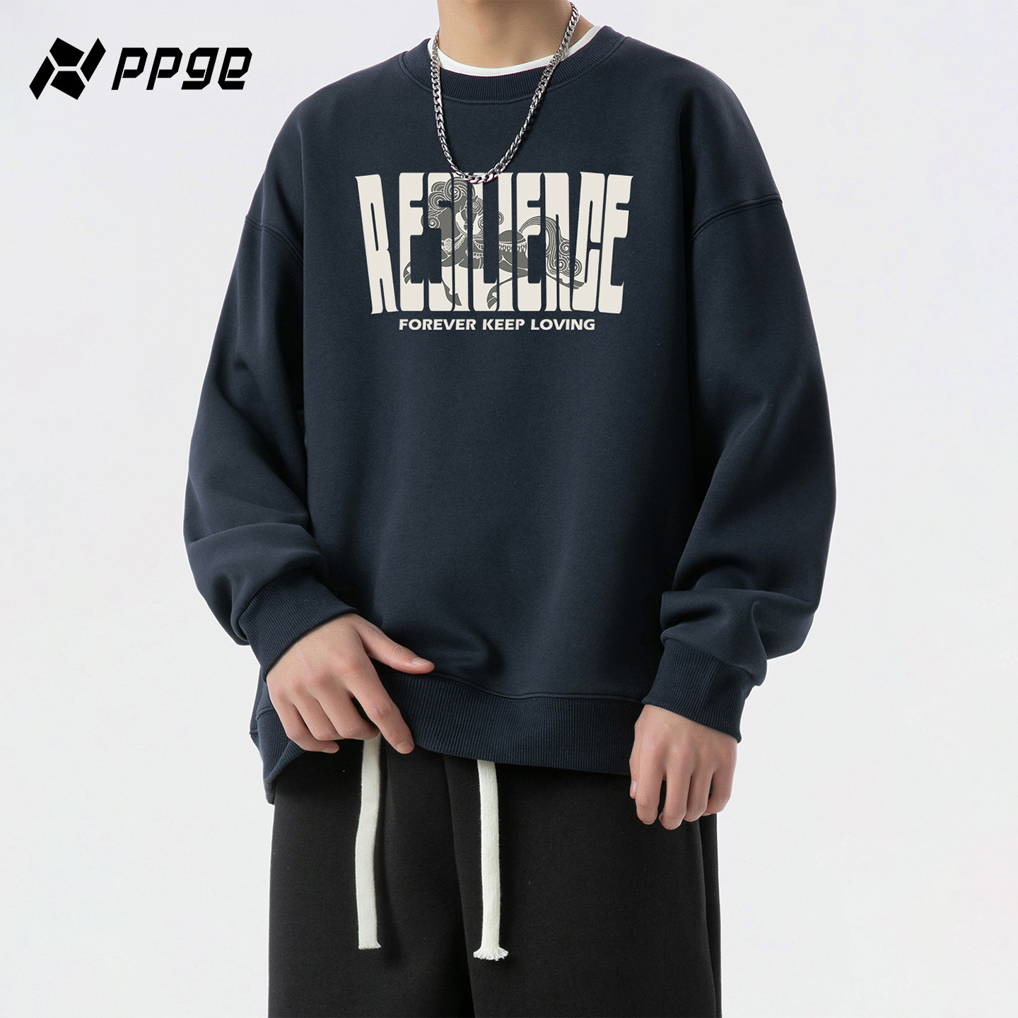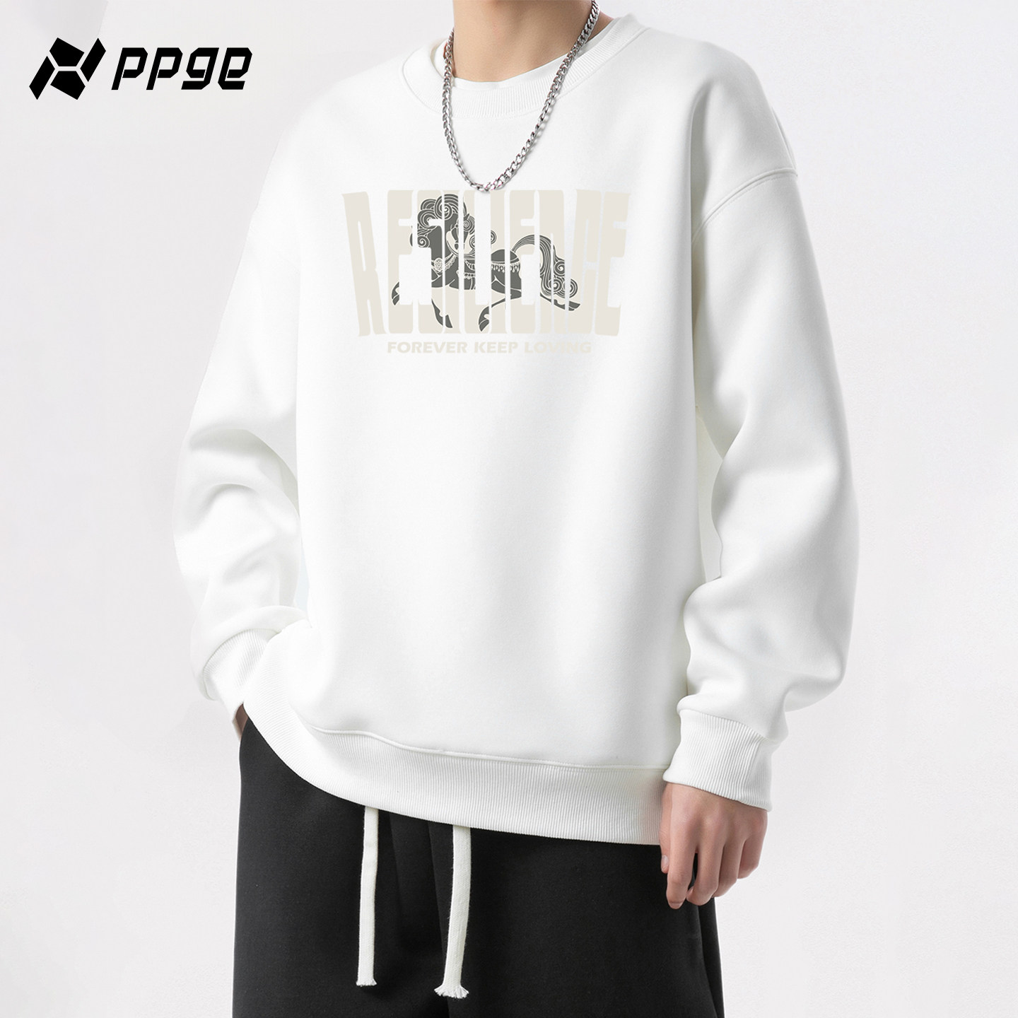 ppge美式圆领卫衣男款2026春季重磅长袖套头上衣华棉内搭打底衫