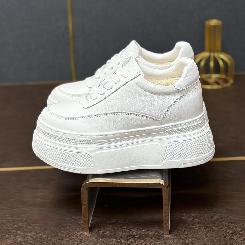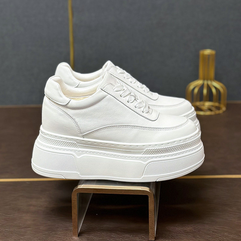 真皮百搭内增高8-10cm小白鞋显脚小2026新款女款小个子厚底松糕鞋