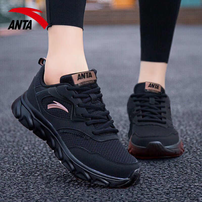 安踏女鞋跑步鞋夏季黑金妈妈鞋子透气正品休闲鞋官方旗舰运动鞋女