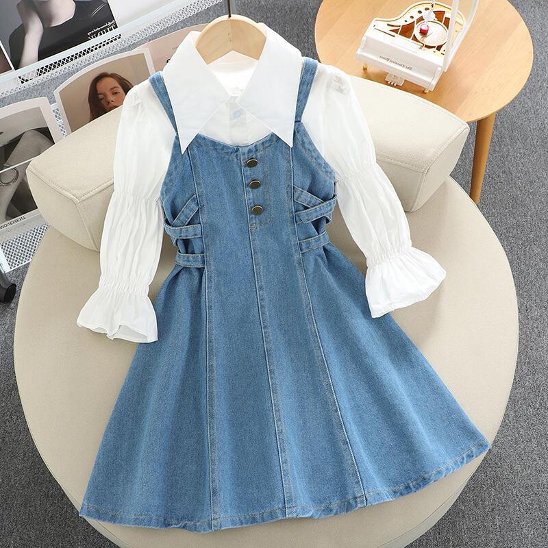女童牛仔连衣裙2026春季新款童装背带裙女大童洋气春秋套装裙子潮