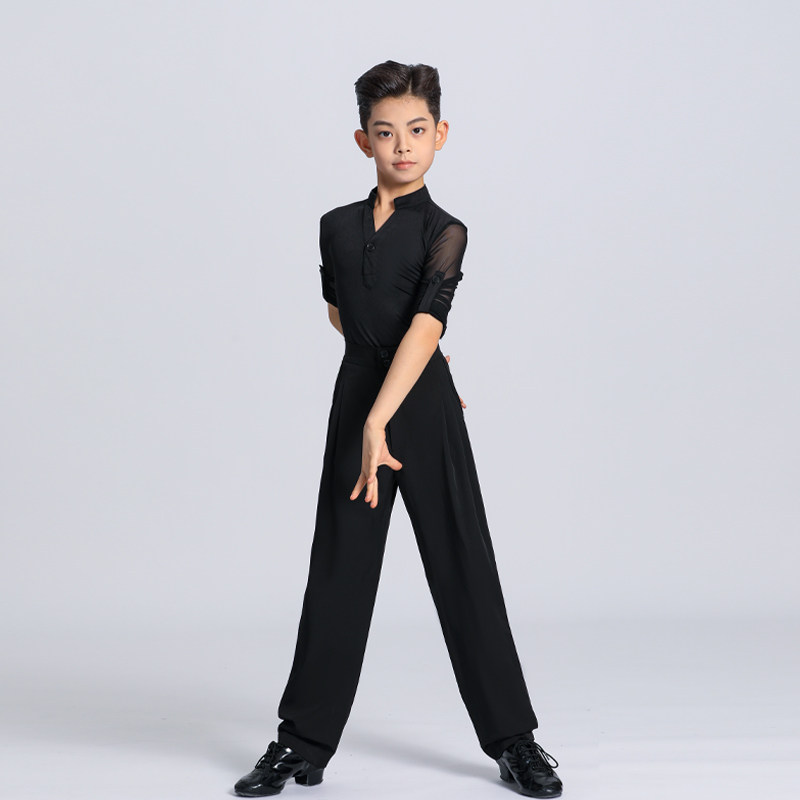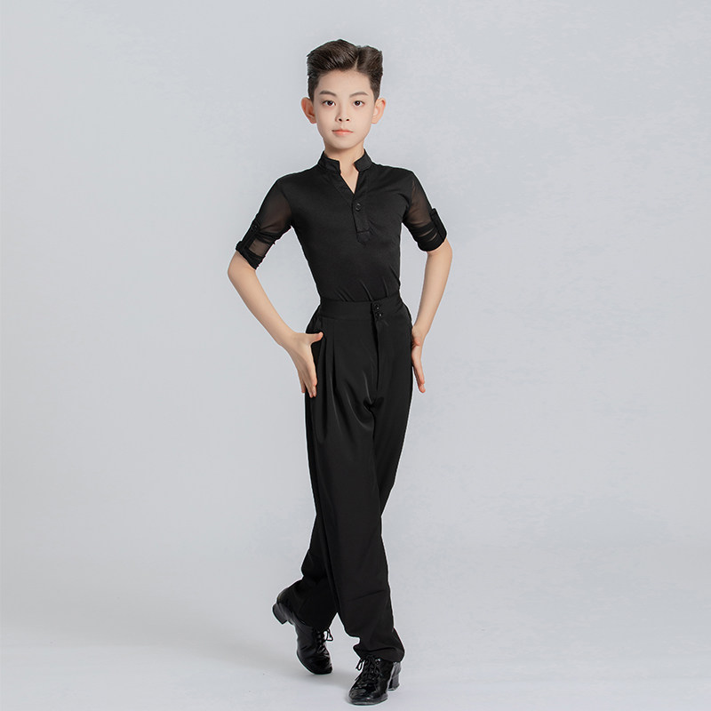 儿童拉丁舞裤子2024新款舞蹈萝卜裤男童摩登舞裤少儿恰恰比赛裤子