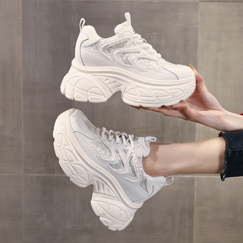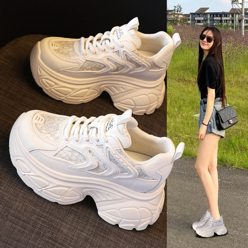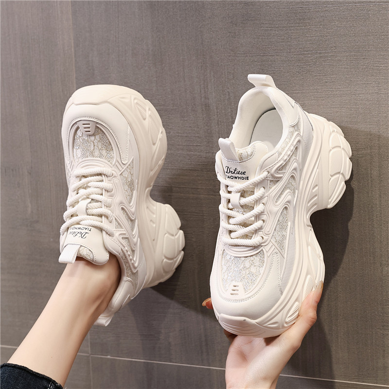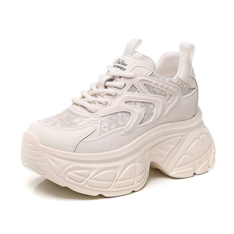 ZFCQ新款内增高老爹鞋女款真皮2026春显脚小黑色高跟小个子休闲鞋