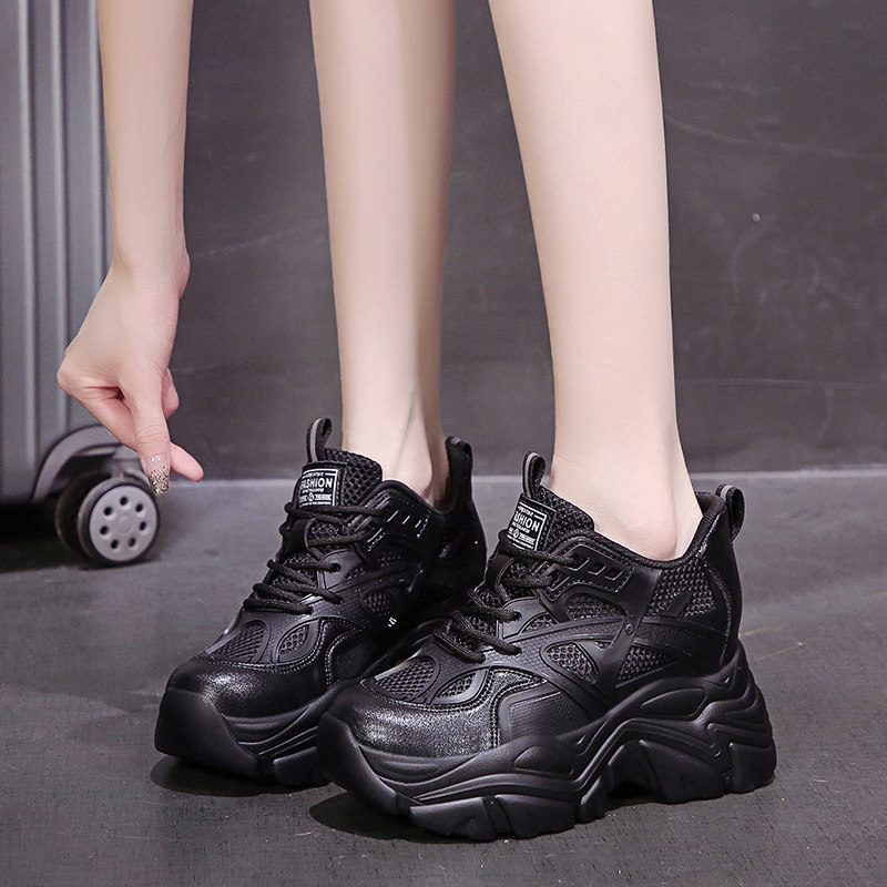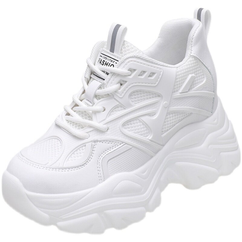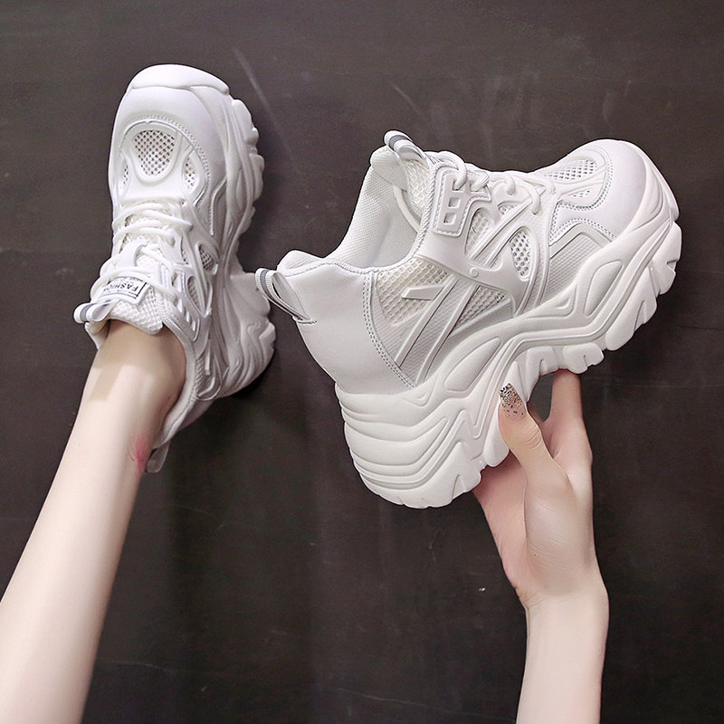白色老爹鞋女夏季薄款2026新款透气网面厚底内增高8cm超火运动鞋