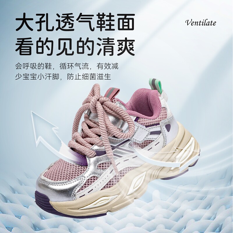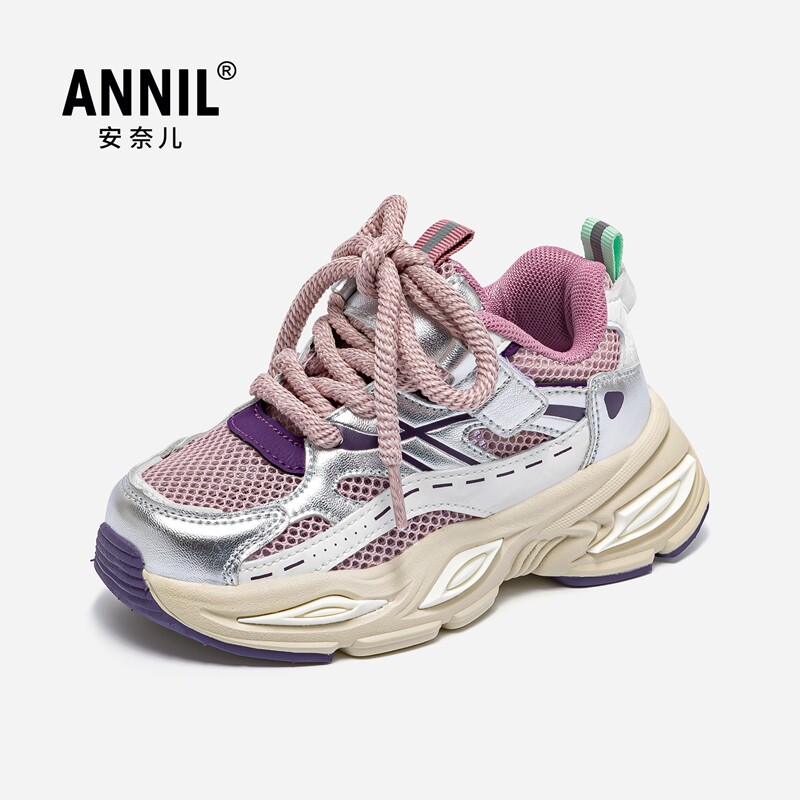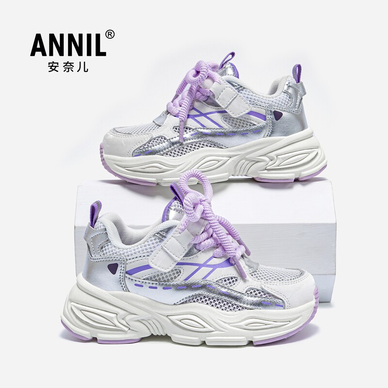 安奈儿女童鞋子新款夏季单网儿童运动鞋女孩透气软底公主