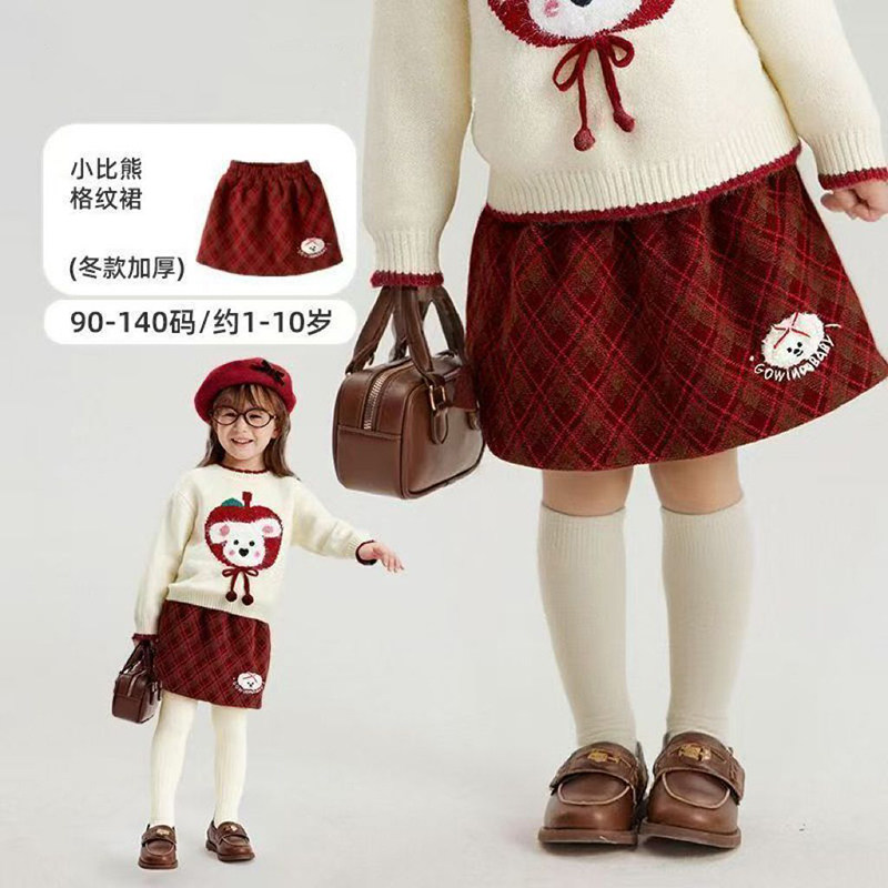 女童套装2026秋冬中大童毛衣半身裙洋气女宝拜年服两件套红色裙子