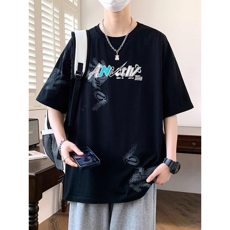 青少年短袖t恤男孩初中生学生帅气夏装2026新款大童纯棉宽松潮牌