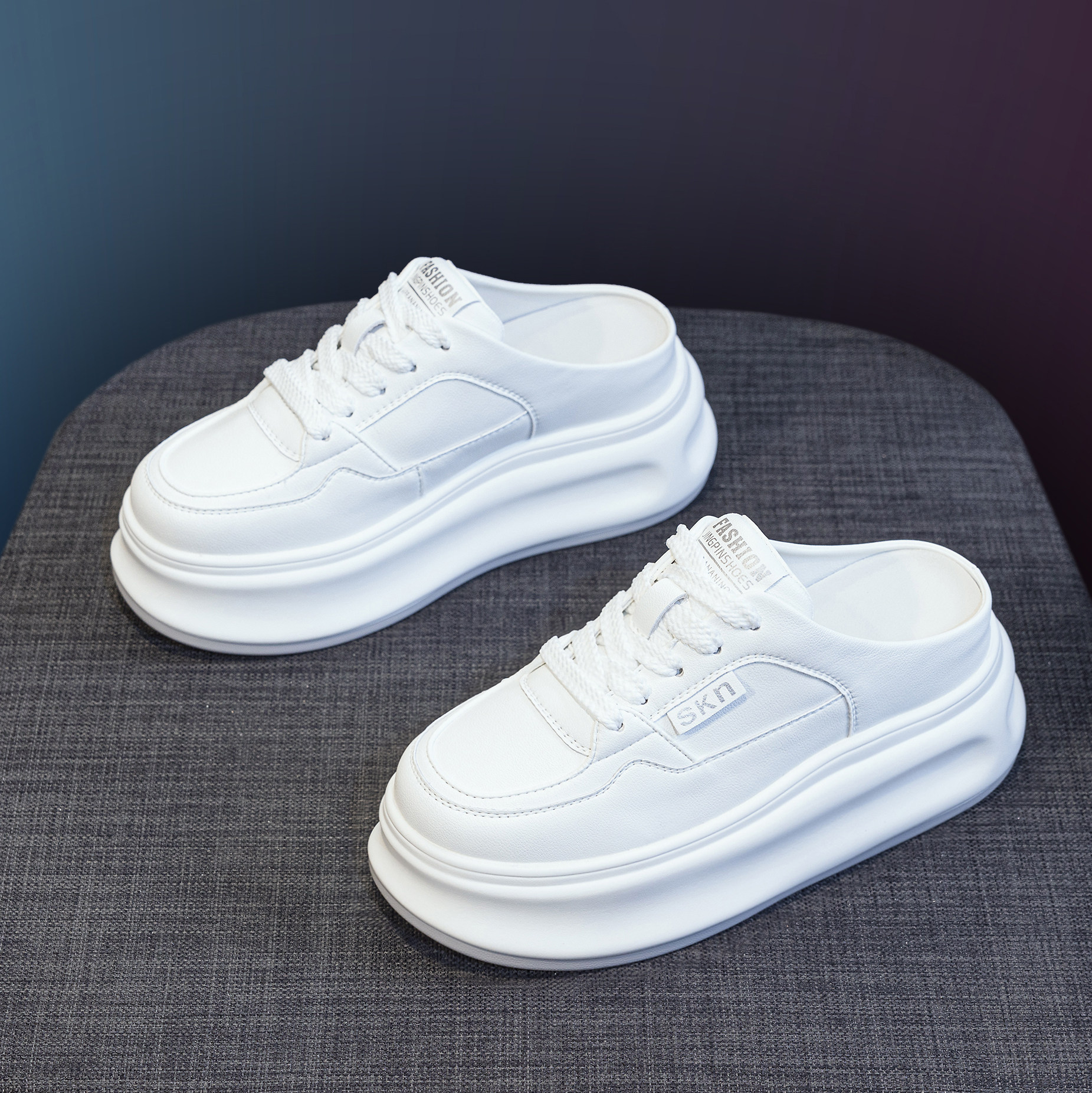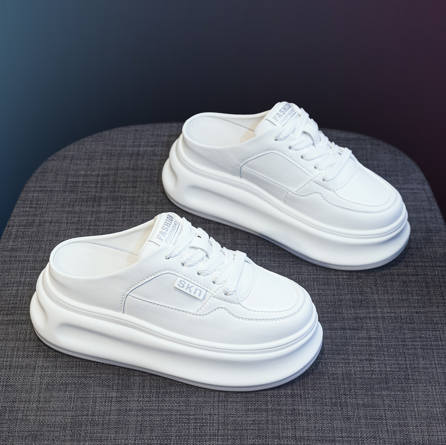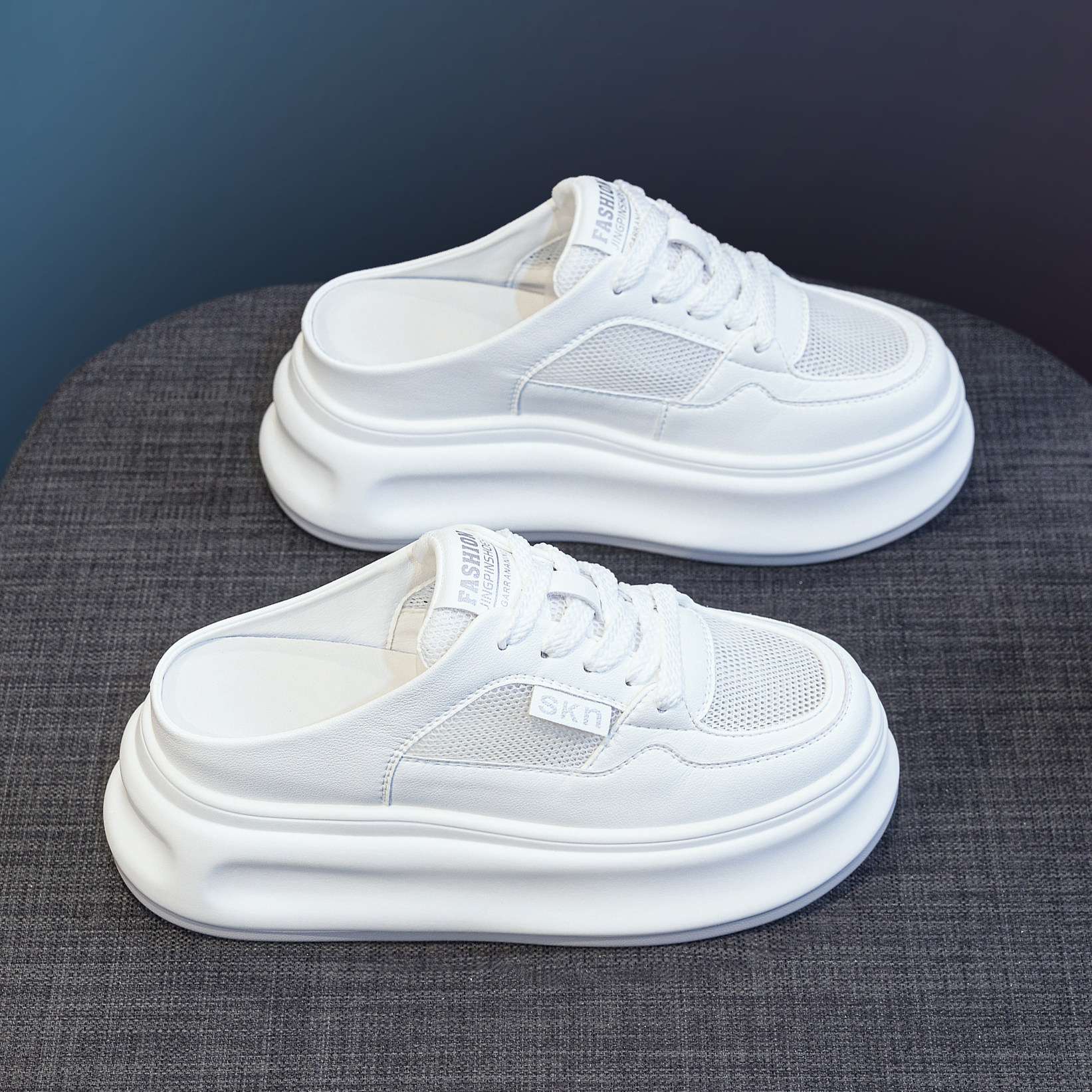 包头半拖女2026年夏季新款厚底小白鞋子外穿拖鞋薄款百搭休闲凉拖