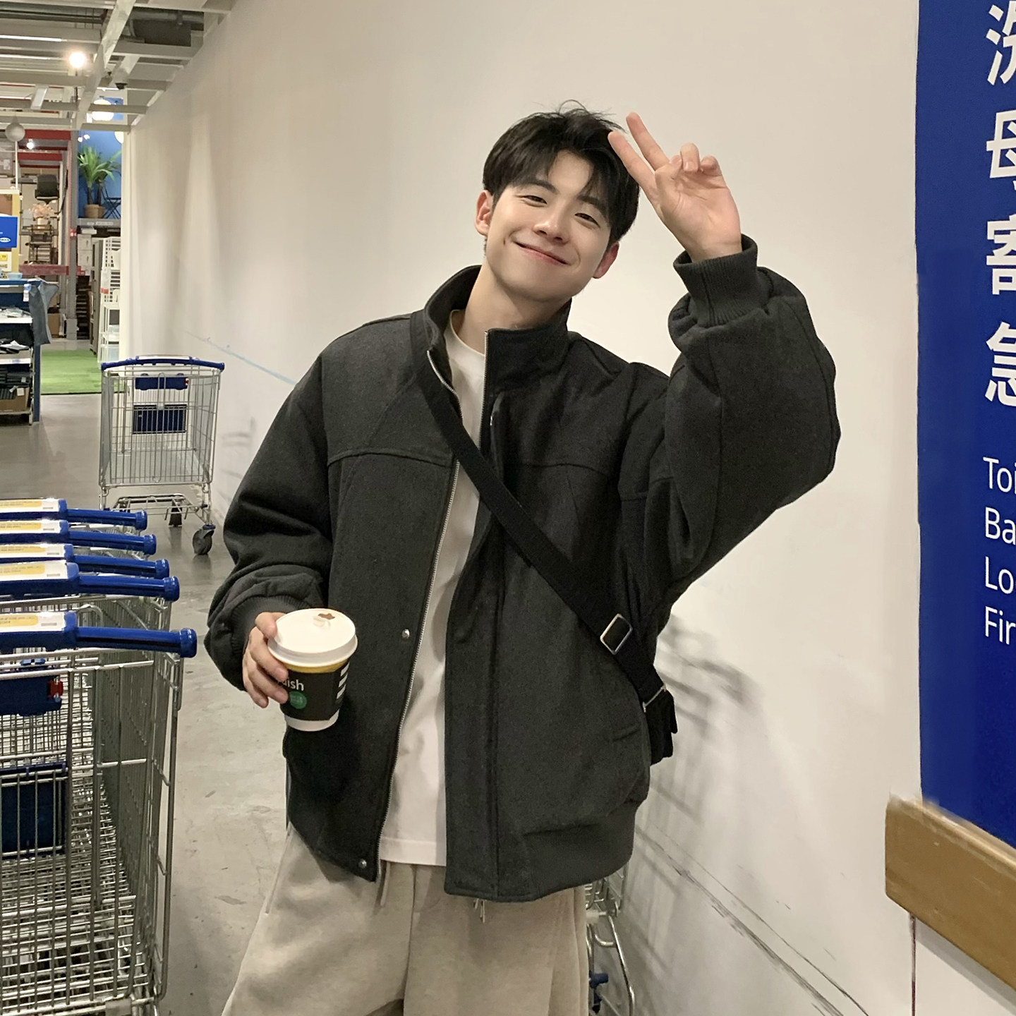 立领毛呢夹克羽绒服男款冬季宽松保暖薄款羽绒外套2026新款高级感