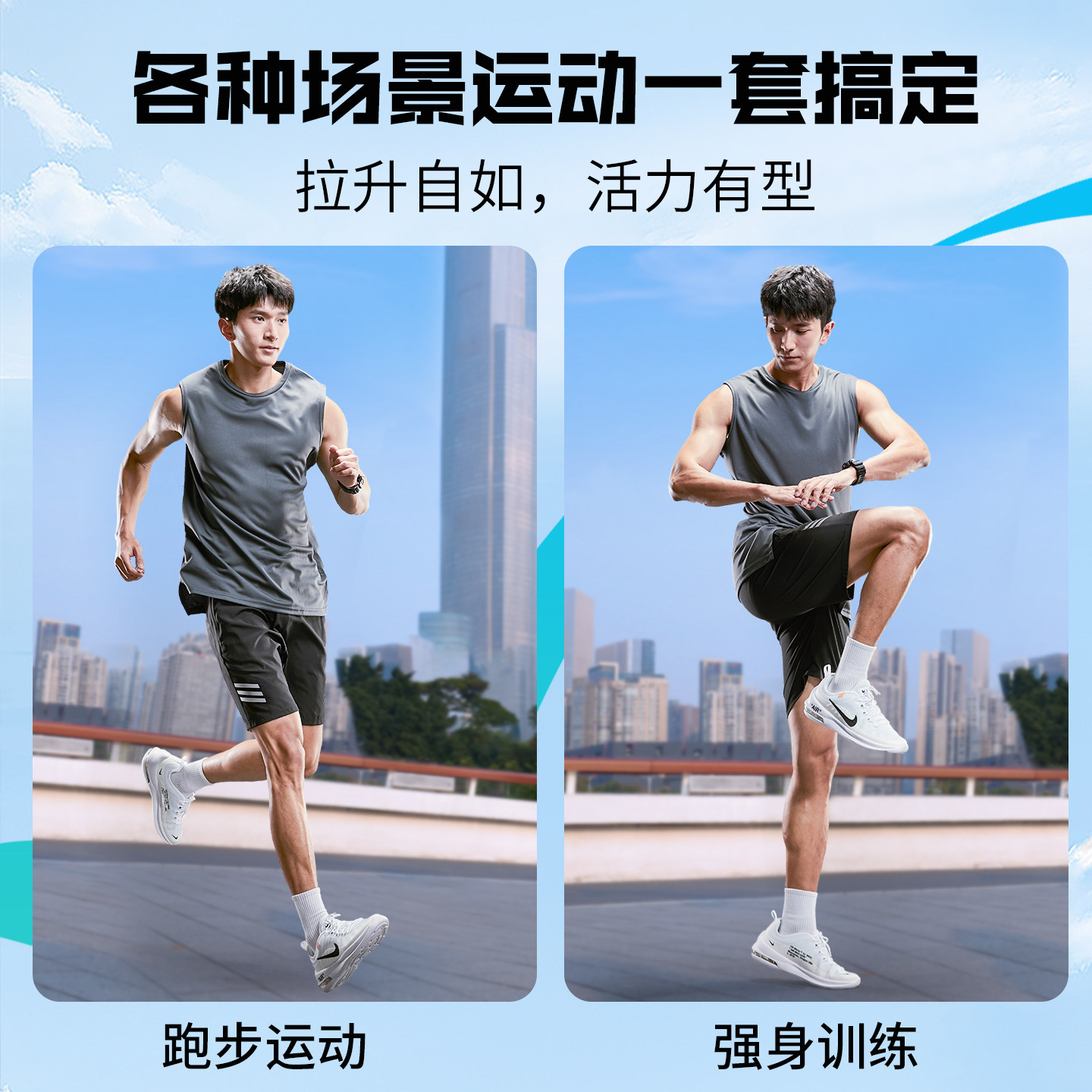 夏季跑步运动套装男背心短裤健身房锻炼装备晨跑运动服羽毛球训练