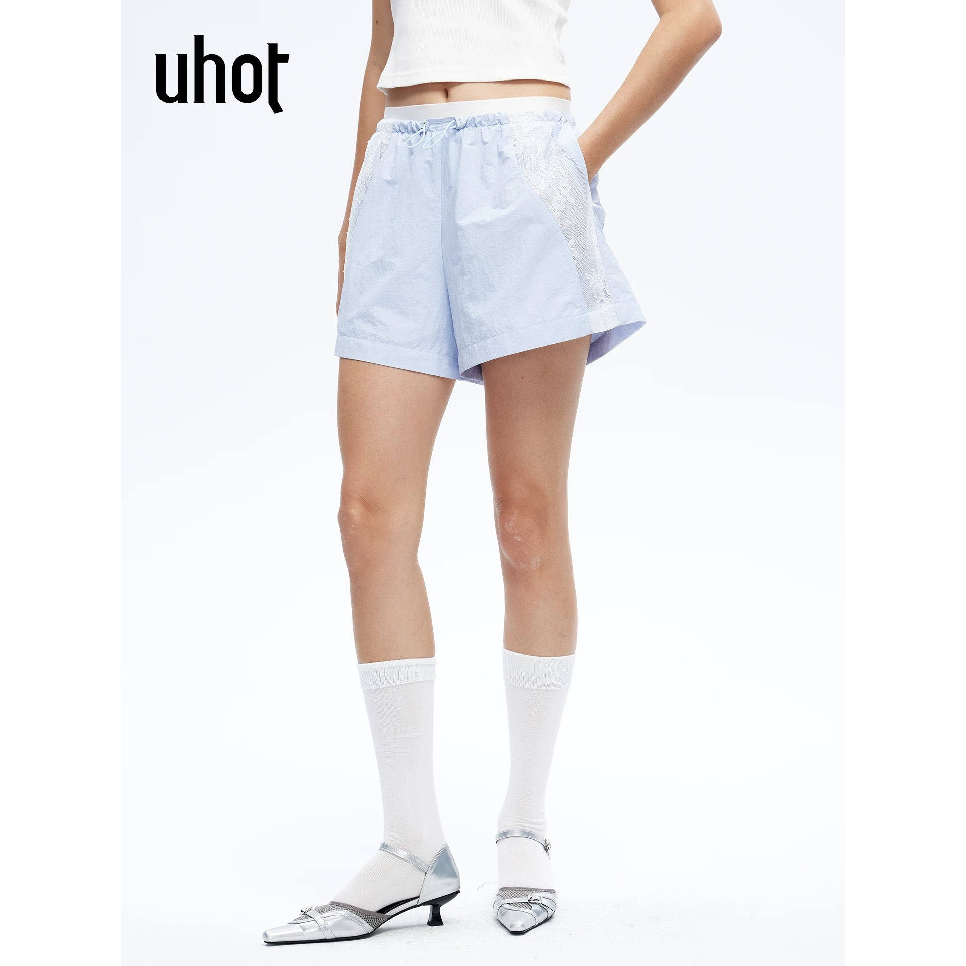 uhot | 诱货 女装 正品折扣 2026春装 蕾丝 蓝色 短裤 UWLS2D329